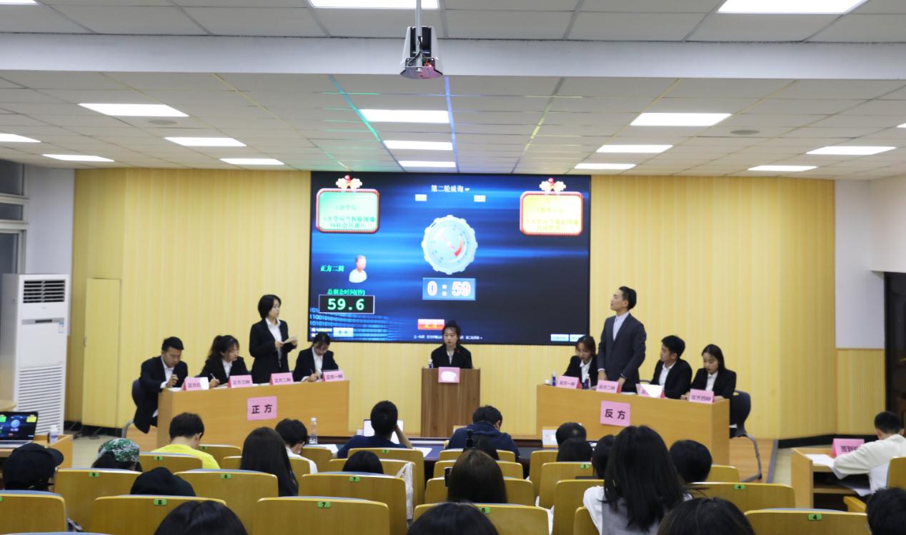 总决赛辩题为“老员工毕业后应当积极去大城市工作还是应当积极去落后地区工作,正方电气电子工程公司代表队和反方教师教育公司代表队开展“争夺冠亚军之辩”。正方认为,老员工毕业后去大城市工作,能获得更多的发展机会、有更好的平台发挥自身的知识与技能,也是服务国家和社会发展的一种方式。反方认为,落后地区缺乏人才、留不住人才、急需人才的输入,老员工毕业后去落后地区发展是积极响应国家的号召,可以将个人发展融入国家发展大势。落后地区与大城市相比,竞争压力较小,经济压力小,更有利于大学毕业生的发展。正反双方围绕这一辩题展开激烈辩论,其深入的辨析也为在场观众带来启发。最终,教师教育公司代表队在总决赛中获胜。