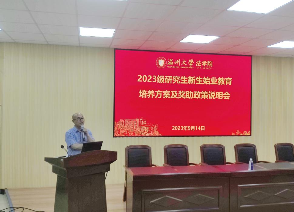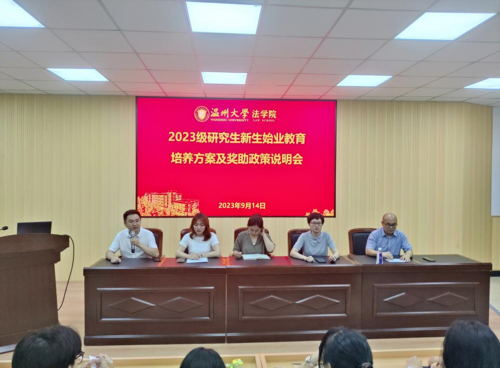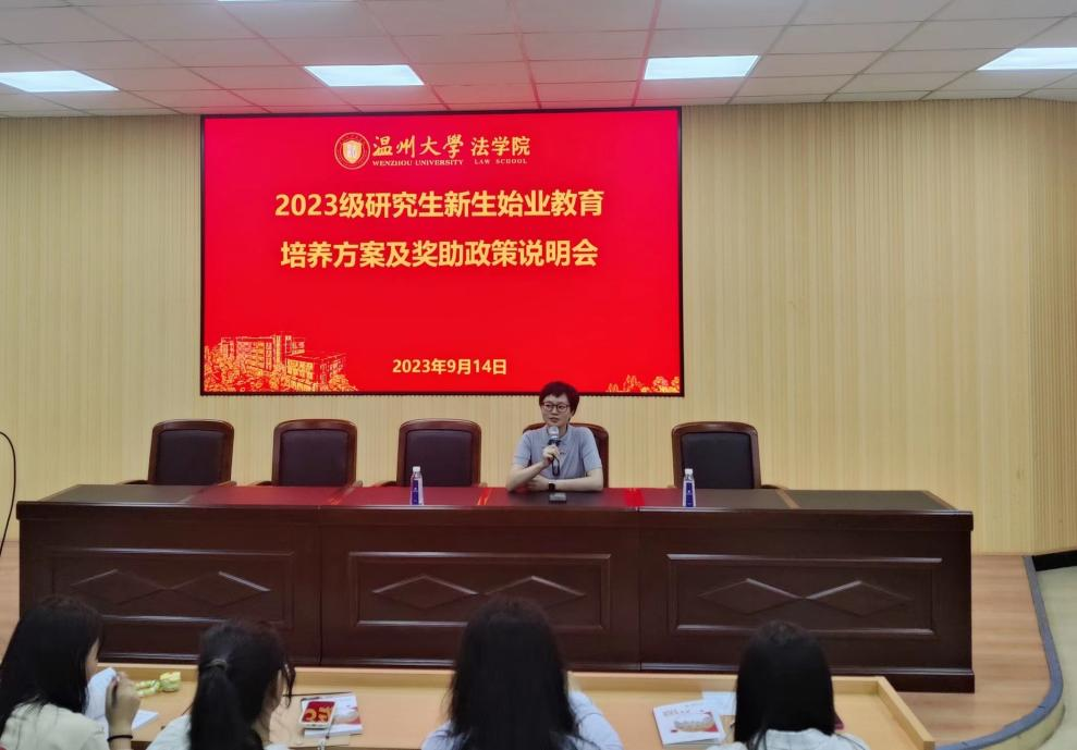 9月14日晚上,公司2023级硕士研究生始业教育培养方案及奖励政策说明会在301会议室举行。yl永利集团官网登录副经理周一颜、法律硕士点负责人肖磊、辅导员谢亭立、辅导员白昌科、教务科胡亚玲老师以及2023级全体硕士研究生参加会议,会议由白昌科老师主持。