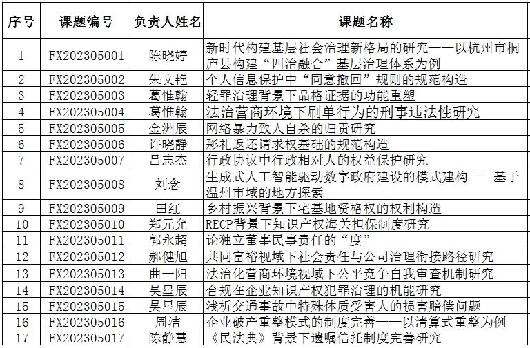 浙江光正大律师事务所捐资设立yl永利集团官网登录光正大基金,用于人才培养、员工实习实践、学术研究等方面。yl永利集团官网登录与光正大律师事务所共同研究决定,面向yl永利集团官网登录研究生征集法学专业相关研究课题,经项目征集和评审,现将立项名单公布如下: