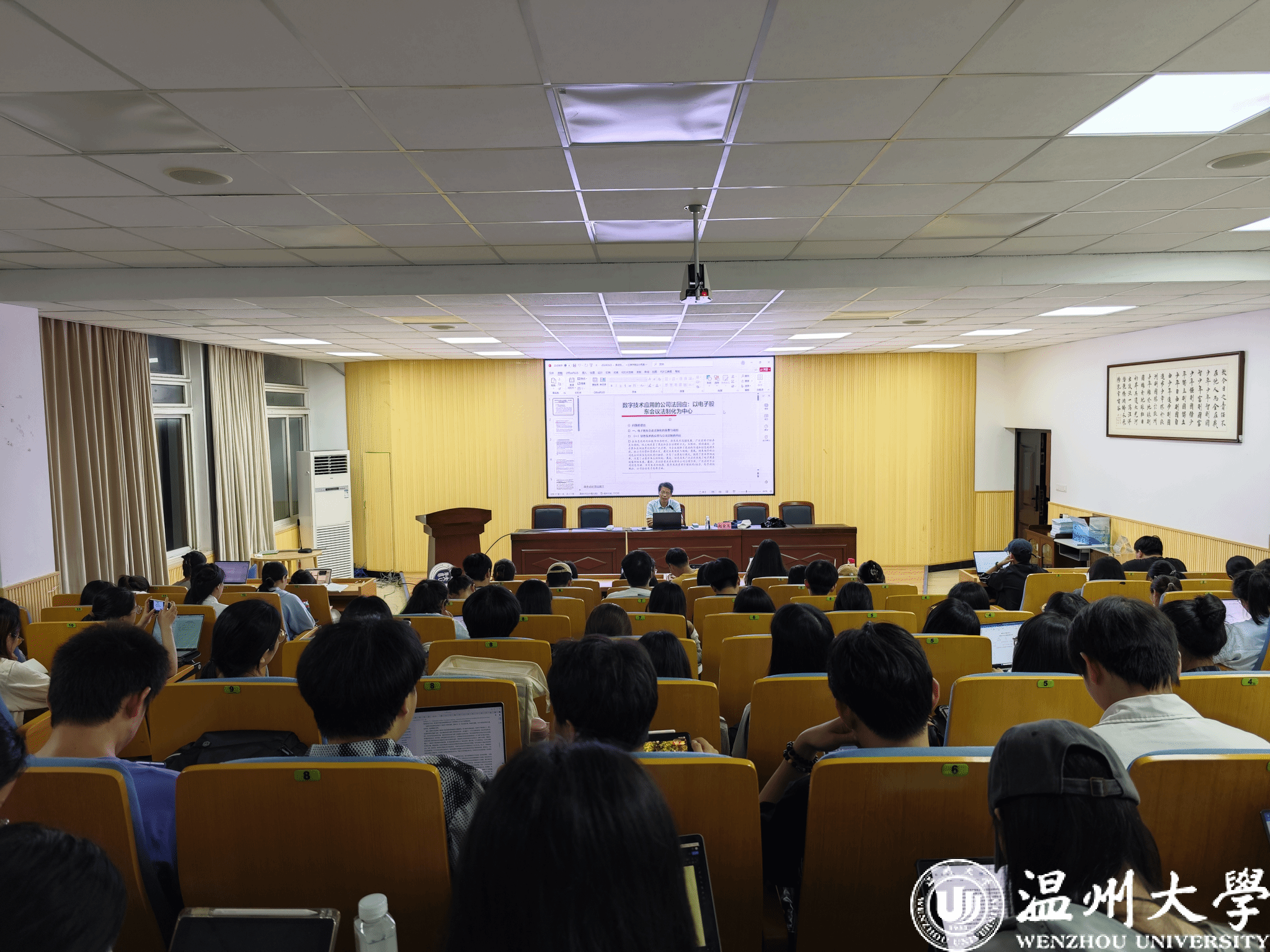 9月25日晚,yl永利集团官网登录法学前沿系列讲座课开讲,由公司赵金龙教授作主体为《数字技术应用的公司法回应:以电子股东会议法制化为中心》的讲座。本次讲座吸引了全院师生50余人到场学习。