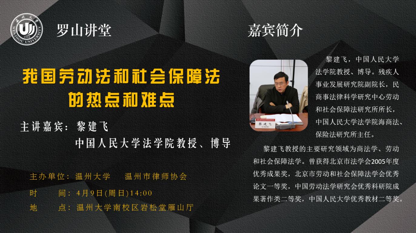 罗山讲堂预告丨黎建飞:我国劳动法和社会保障法的热点和难点