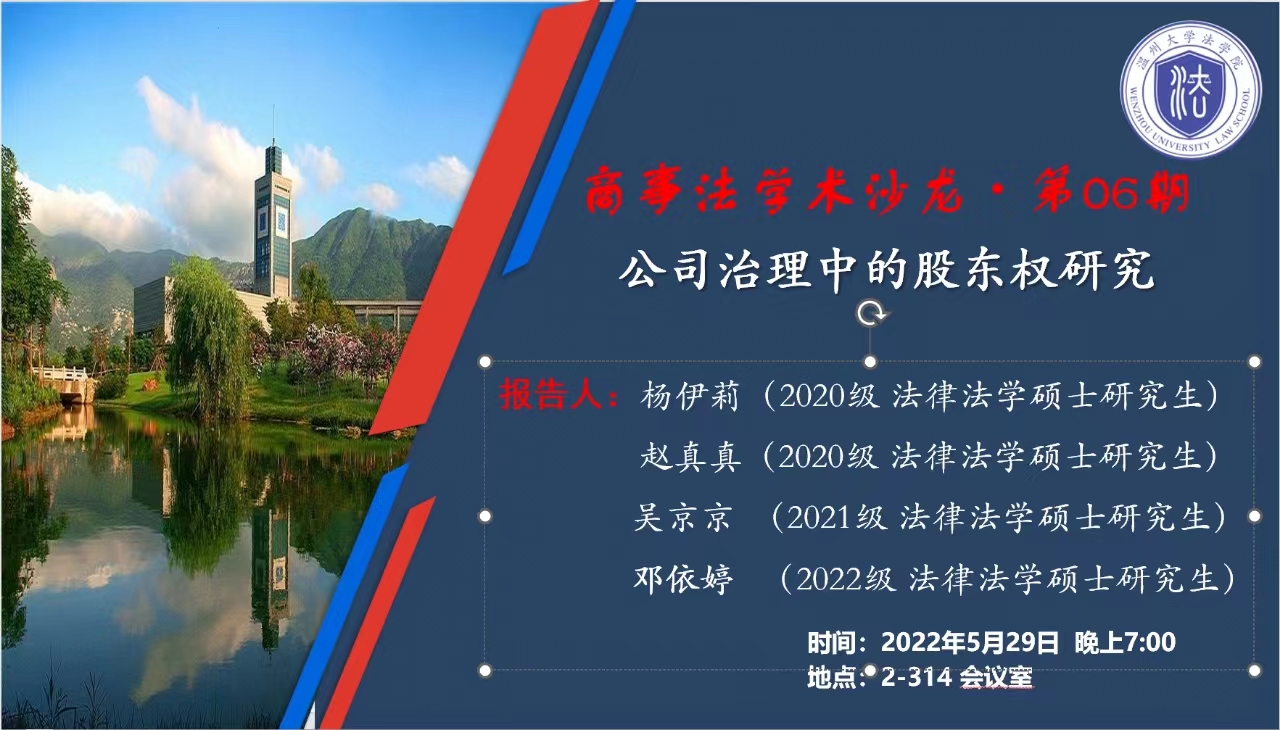 商事法学术沙龙第06期 公司治理中的股东权研究
