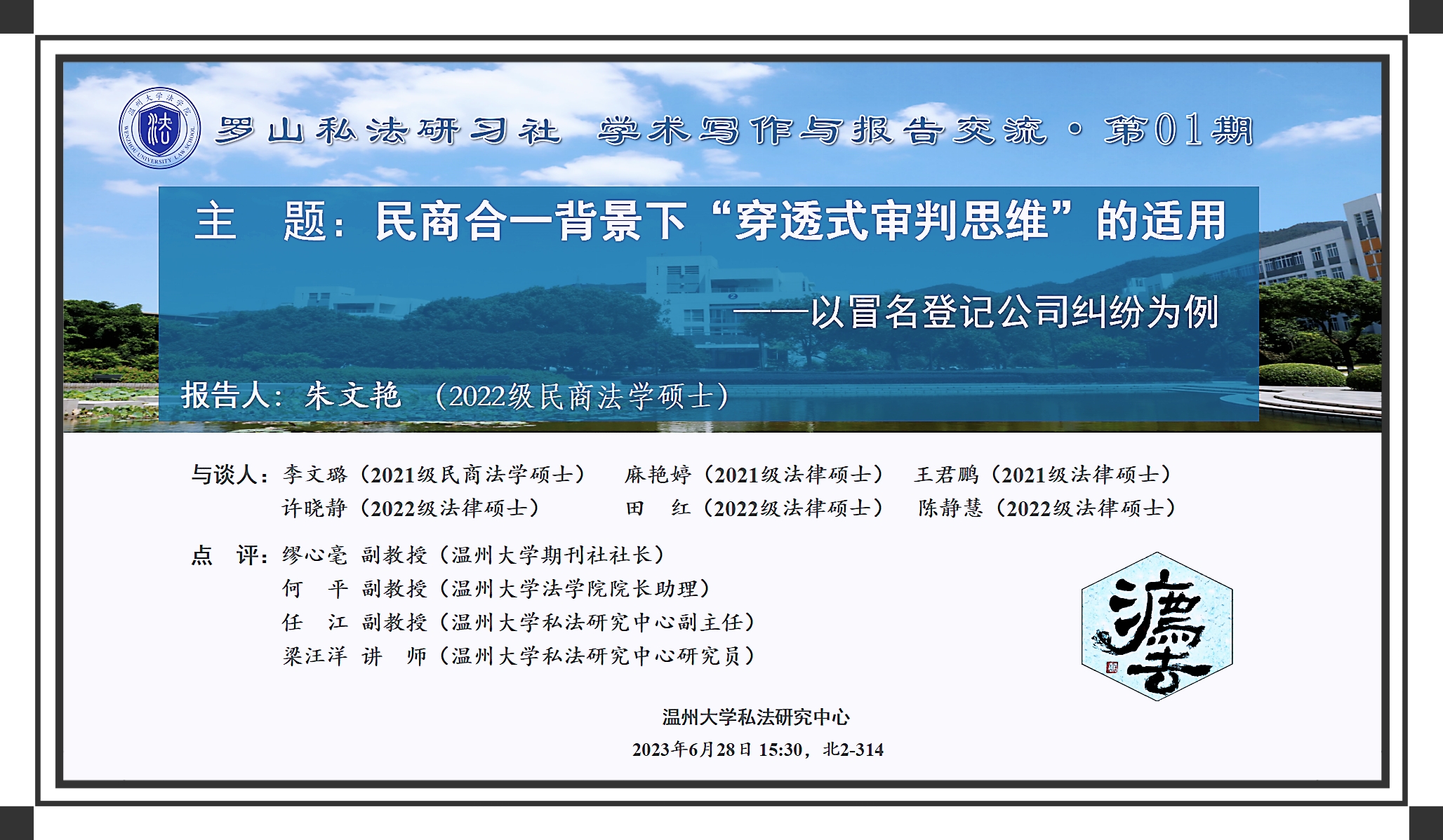 罗山私法研习社学术写作与报告交流·第01期 民商合一背景下“穿透式审判思维”的适用——以冒名登记公司纠纷为例