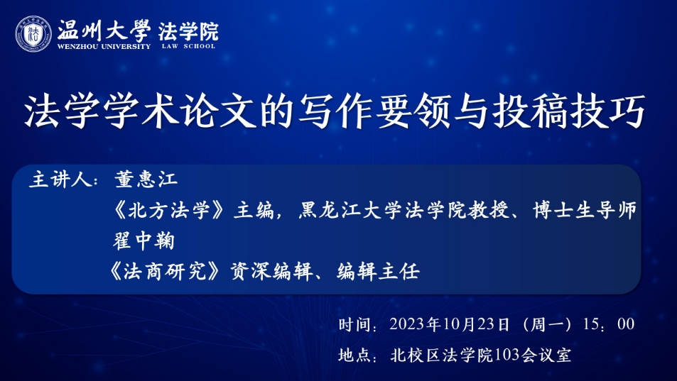 讲座预告:法学学术论文的写作要领与投稿技巧