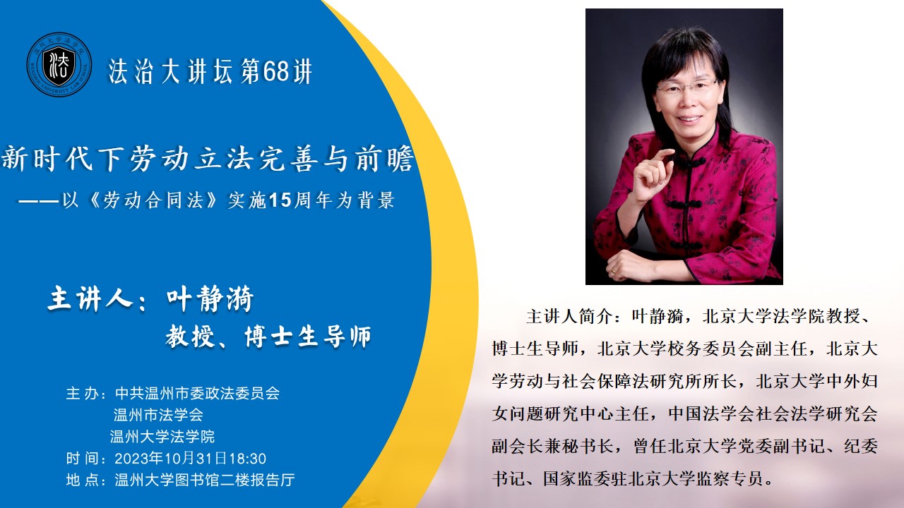 讲座预告:法治大讲坛第68讲 新时代下劳动立法完善与前瞻 ——以《劳动合同法》实施15周年为背景