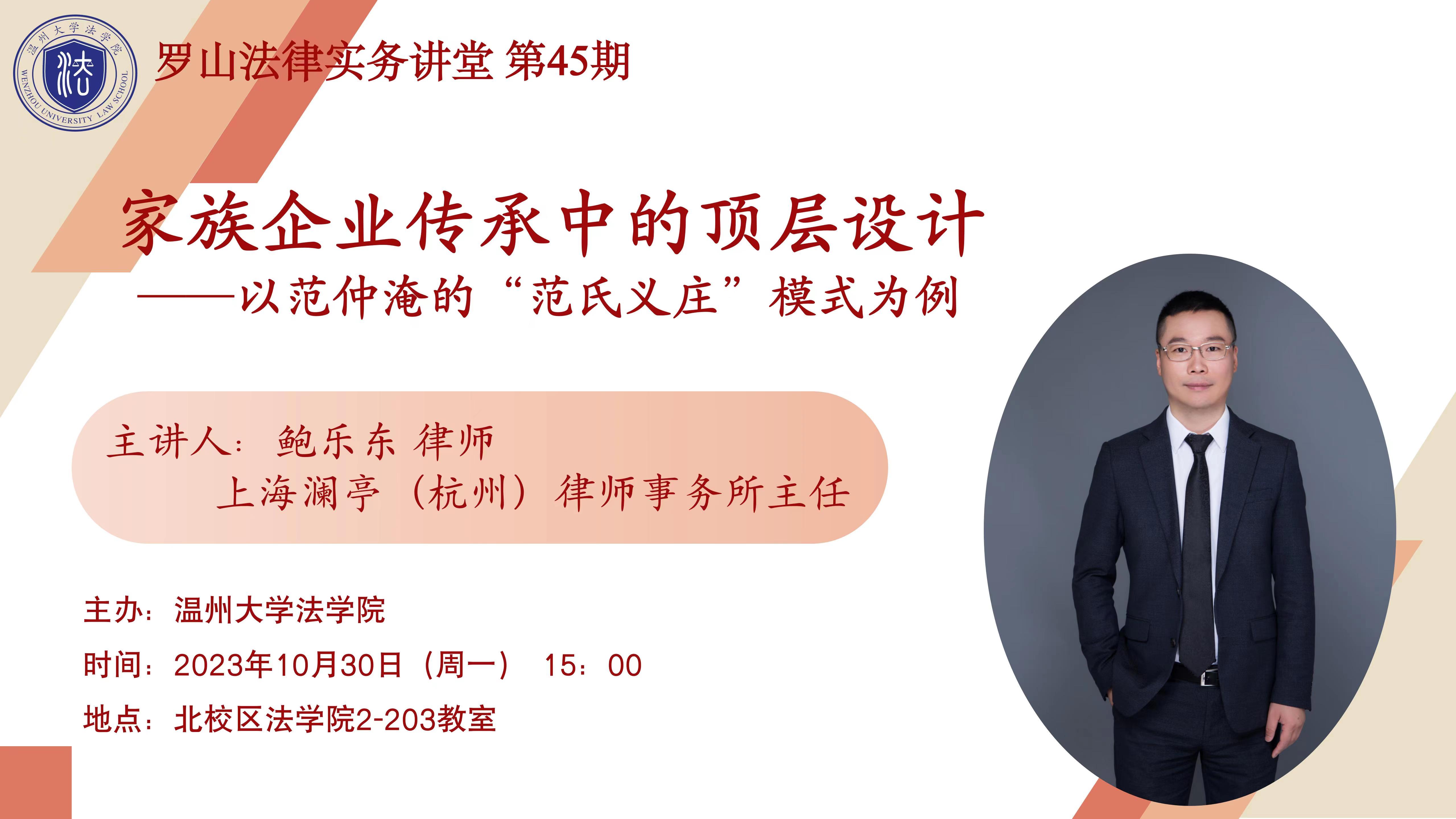 讲座预告:家族企业传承中的顶层设计丨罗山法律实务讲堂第45期