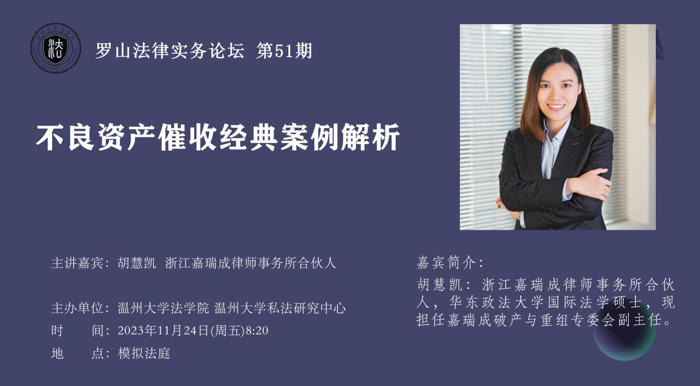讲座预告丨罗山法律实务论坛 第51期:不良资产催收经典案例解析