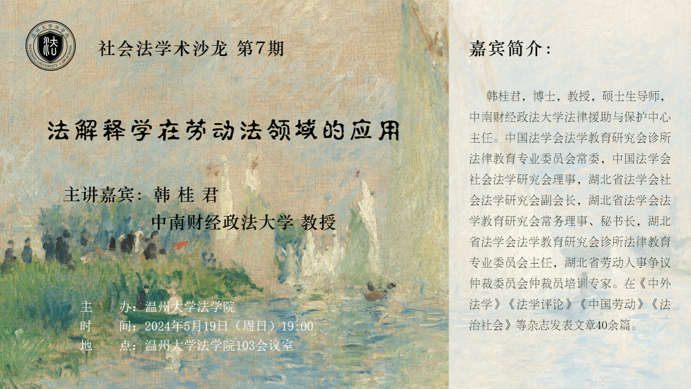讲座预告丨社会法学术沙龙 第7期:法解释学在劳动法领域的应用