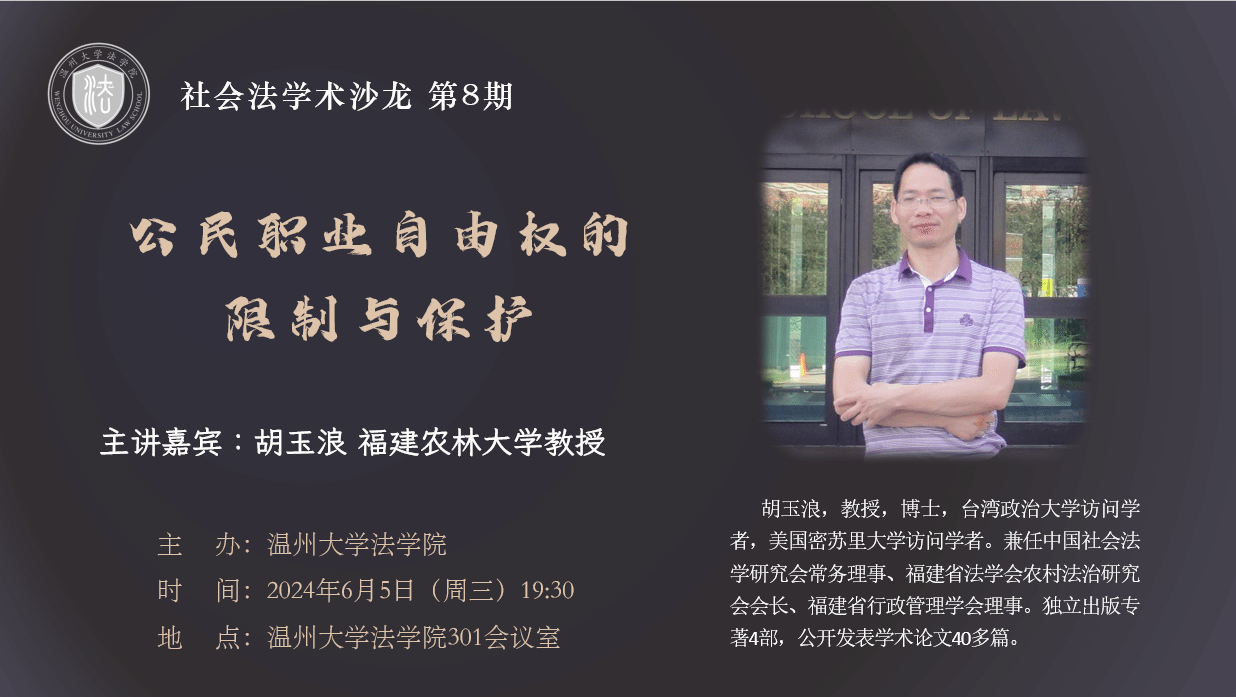讲座预告丨社会法学术沙龙 第8期:公民职业自由权的限制与保护