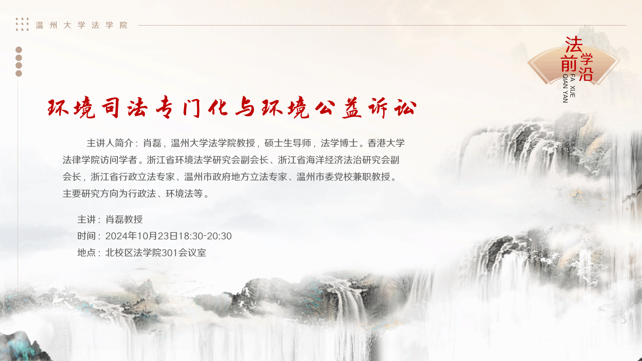 讲座预告|10月18日法学前沿第6讲:环境司法专门化与环境公益诉讼(主讲人:肖磊)