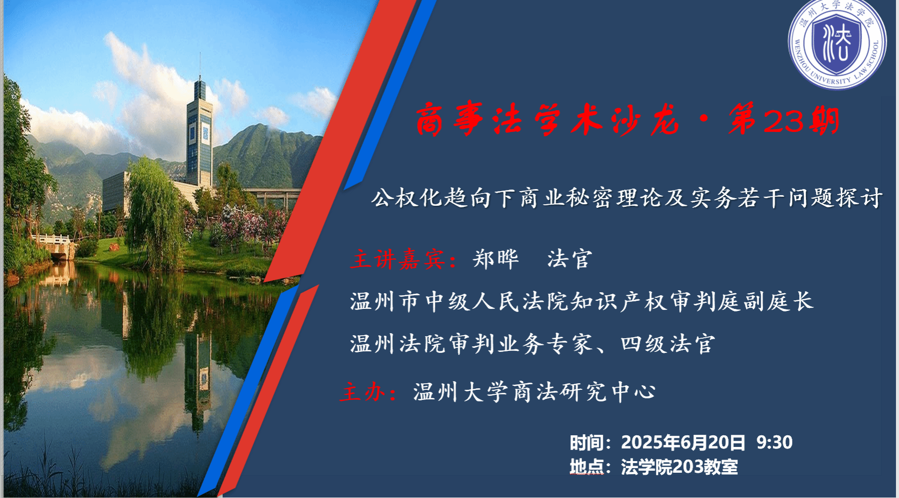 讲座预告|商事法学术沙龙·第23期 公权化趋向下商业秘密理论及实务若干问题探讨