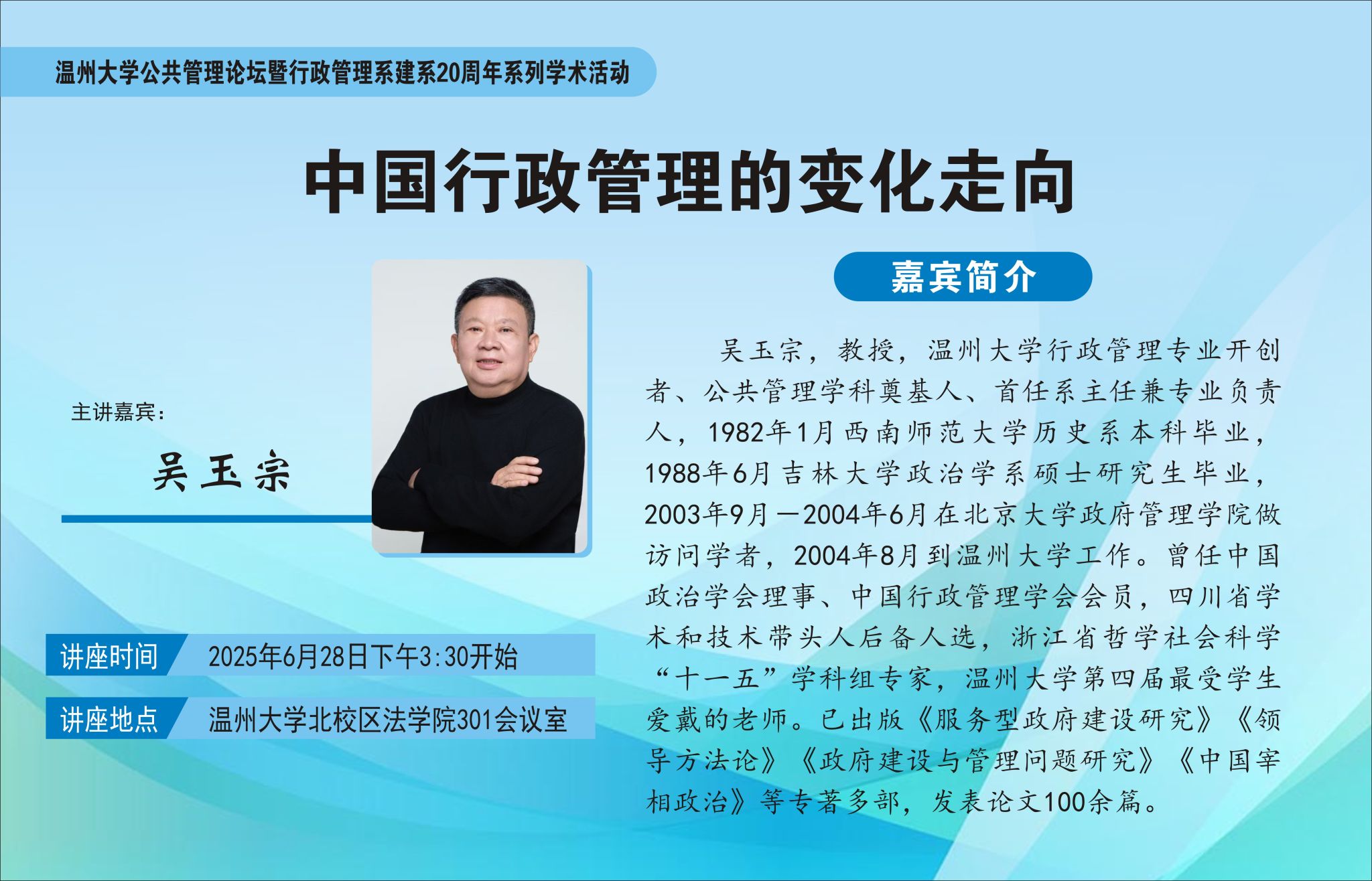 永利集团官网公共管理论坛暨行政管理系建系20周年系列学术活动预告|中国行政管理的变化走向