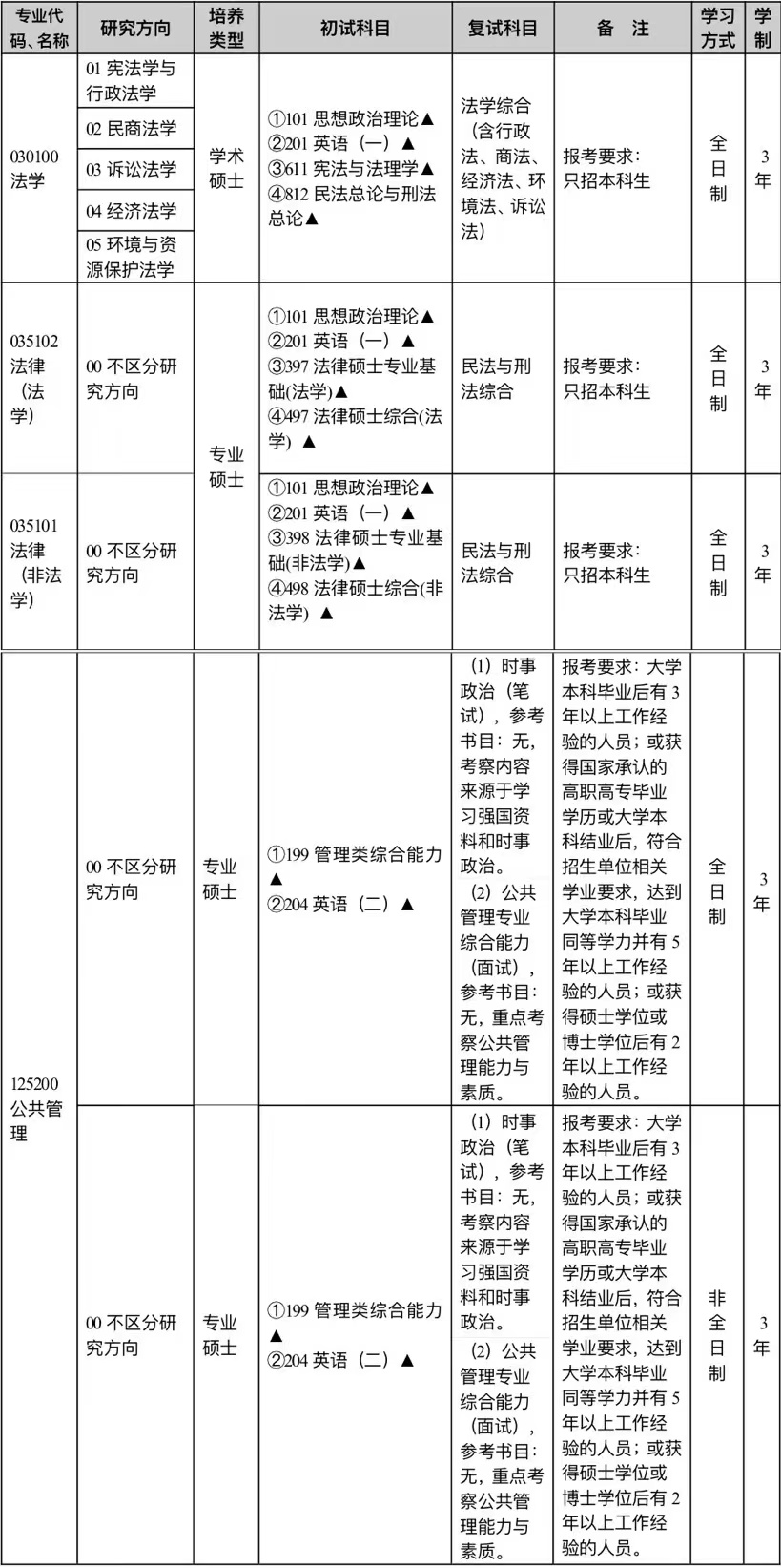 公司面向全国招收全日制法学(学术型)硕士研究生、法律(法学、非法学)硕士专业学位研究生、公共管理硕士(全日制、非全日制)专业学位研究生,报考条件如下: