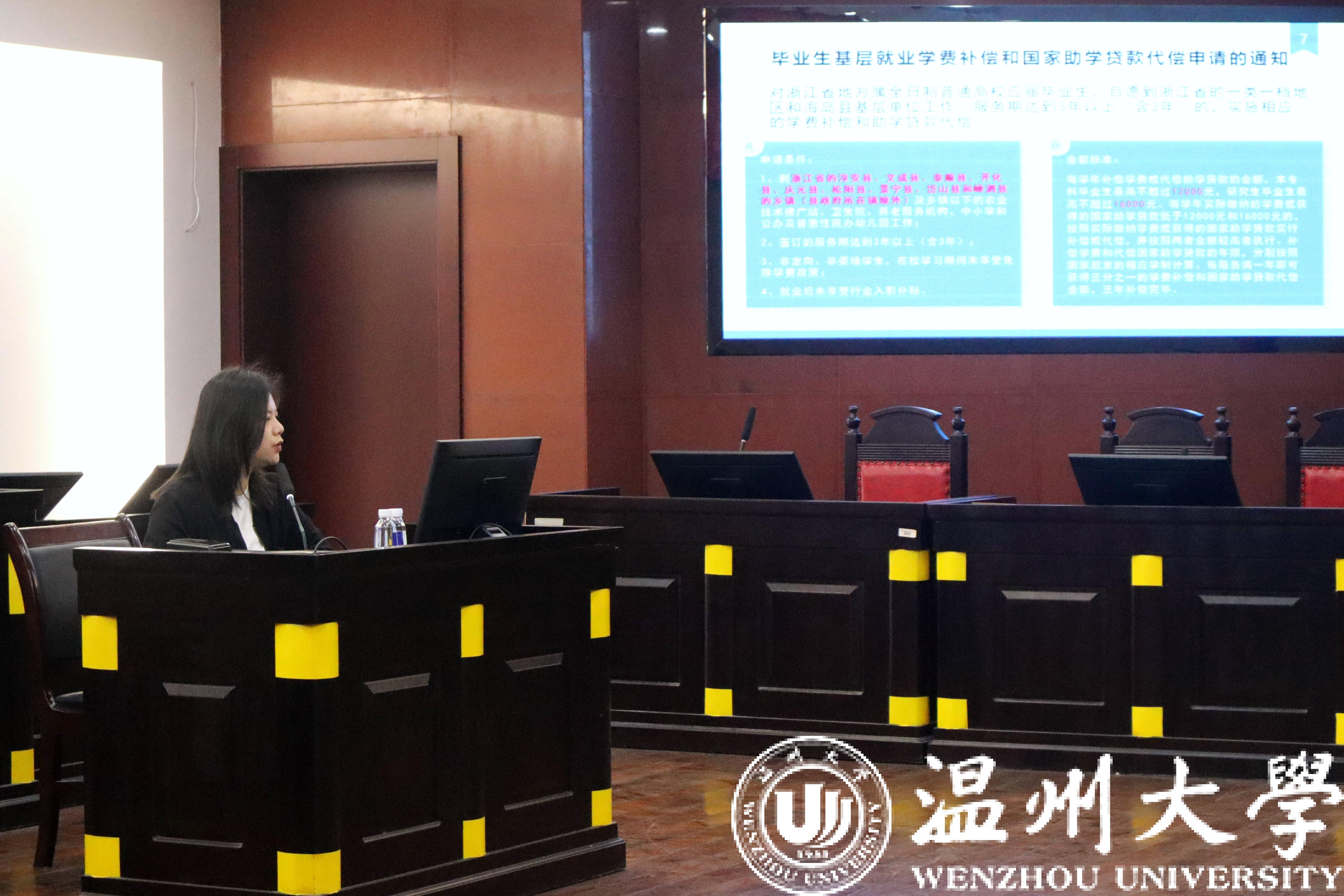 为帮助毕业生清晰就业形势和就业手续流程,5月8日上午,yl永利集团官网登录2023届毕业生就业政策说明会在北校区模拟法庭举行,全体毕业生参加本次会议。