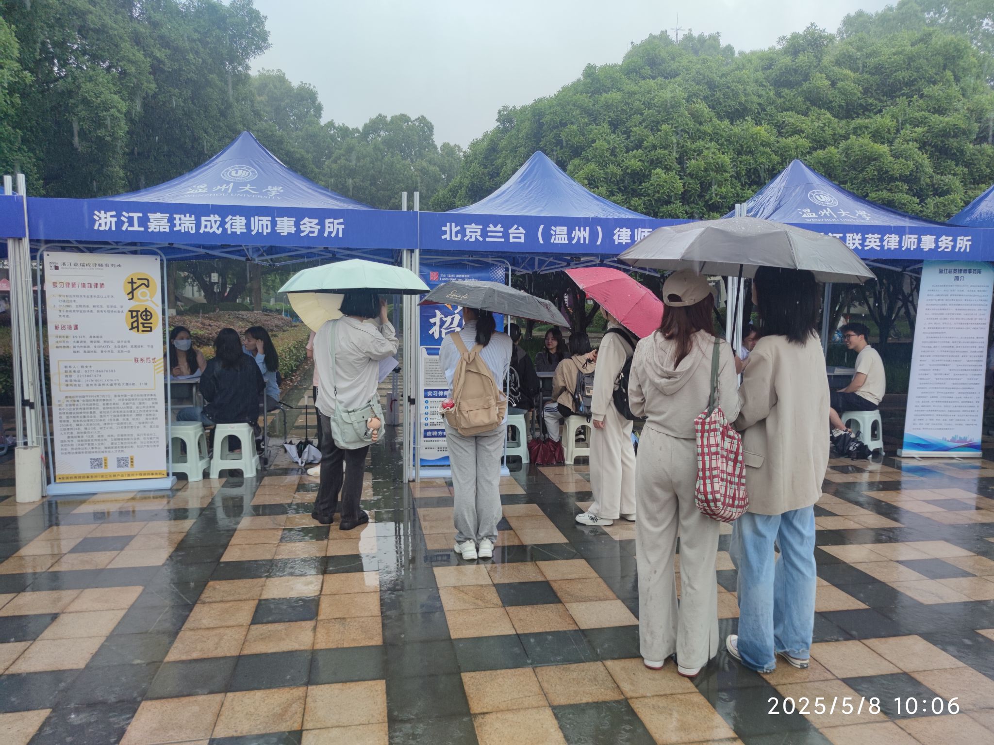 为扎实推进毕业生高质量就业,充分搭建法律人才供需对接平台,助推温州青年发展型城市建设,5月8日上午,由永利集团官网、温州市律师协会、温州市公证协会联合举办的永利集团官网2025年法律人才专场招聘会在北校区顺利举办。温州市律师协会会长金疆,人才招聘处、yl永利集团官网登录相关负责同志参加现场活动。