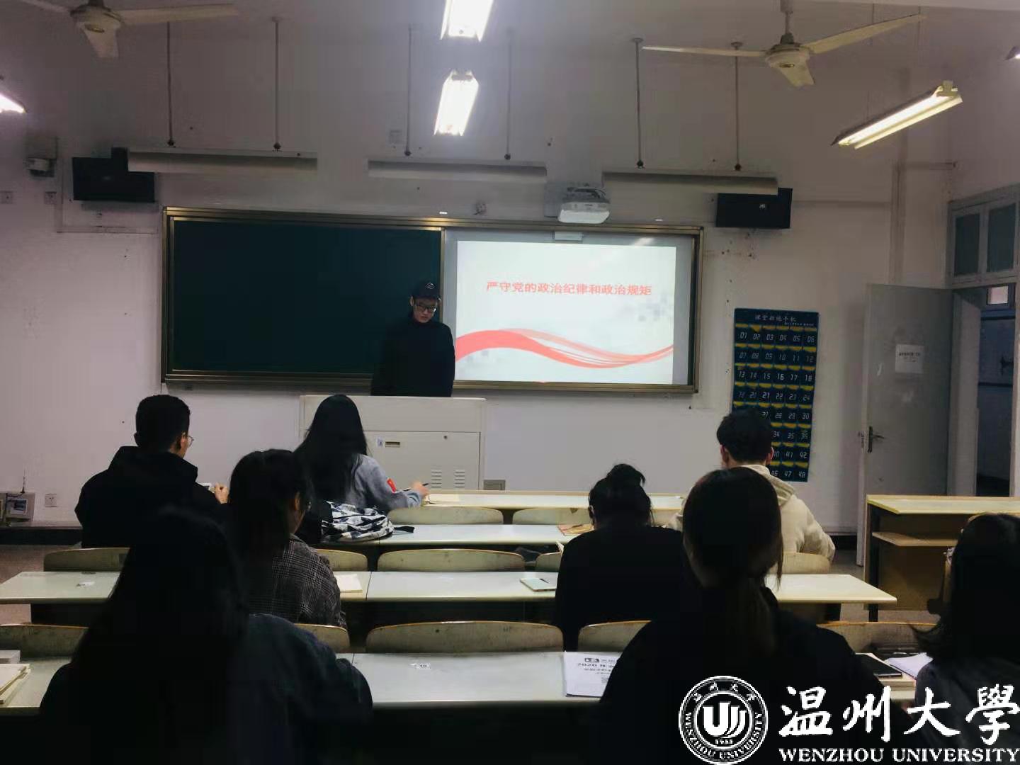 为深入贯彻“不忘初心、牢记使命”主题教育总要求,员工第一党支部于2019年11月12日晚在yl永利集团官网登录310教室开展了专题学习活动。支部同志葛致远和吴成围绕“严守党的政治纪律和政治规矩”向支部全体党员开展了专题报告。