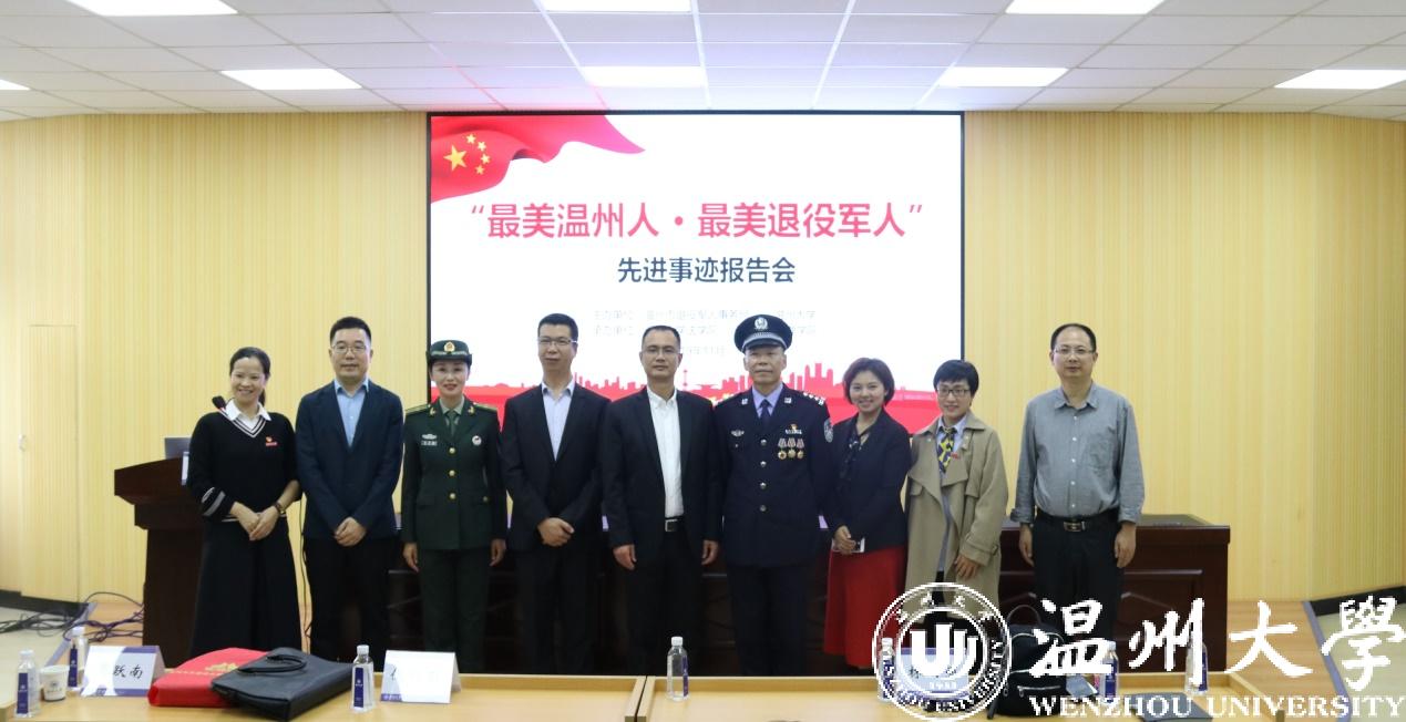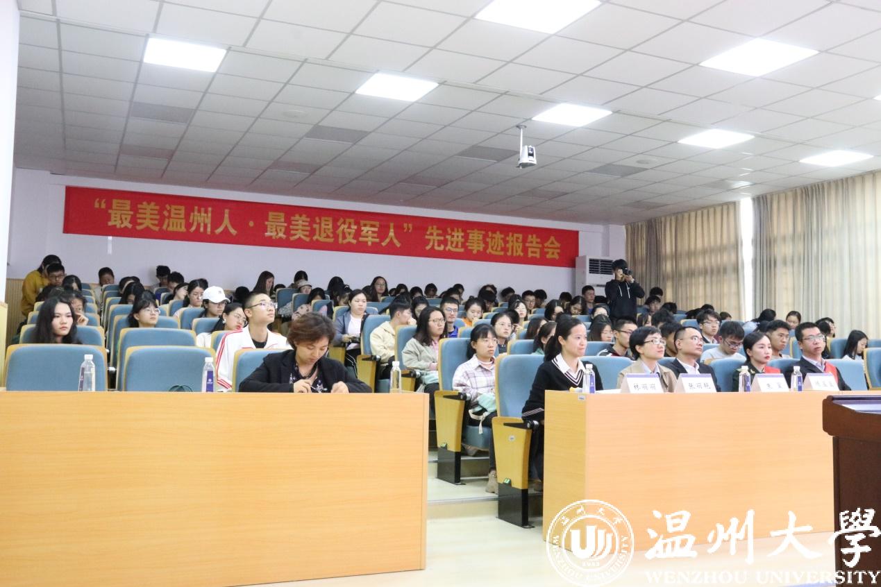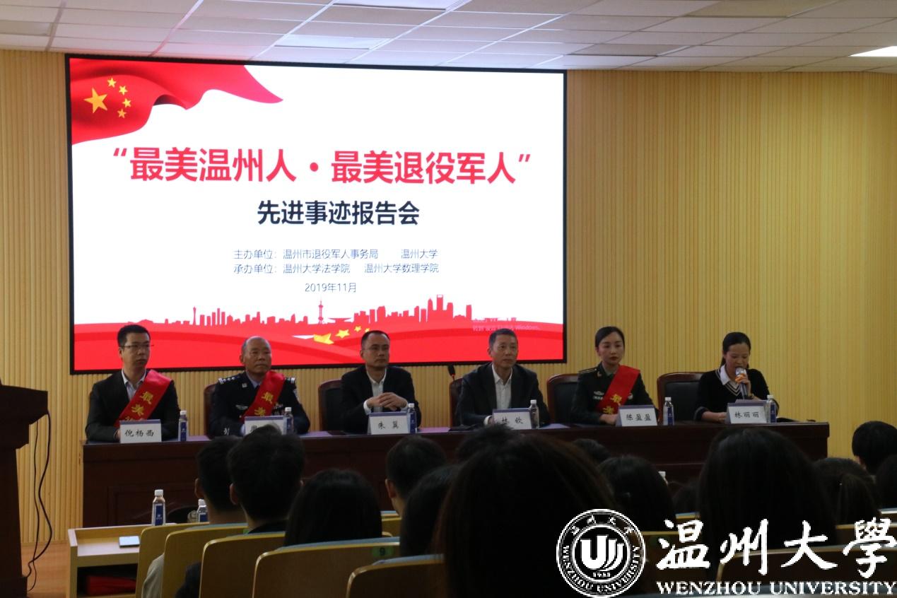 11月13日下午,由温州市退役军人事务局、yl永利集团官网登录、数理公司联合主办的“最美温州人·最美退役军人”先进事迹报告会在yl永利集团官网登录楼301报告厅举行。温州市退伍军人事务局党组成员、副局长朱翼、公司党委书记林钦、最美退伍军人周跃南、倪杨西、陈盈盈、数理公司学工办主任张丽艳、温州市退伍军人事务局工作人员出席本次报告会。本次报告会由yl永利集团官网登录学工办主任林丽丽主持。yl永利集团官网登录、数理公司全体员工党员参加报告会。