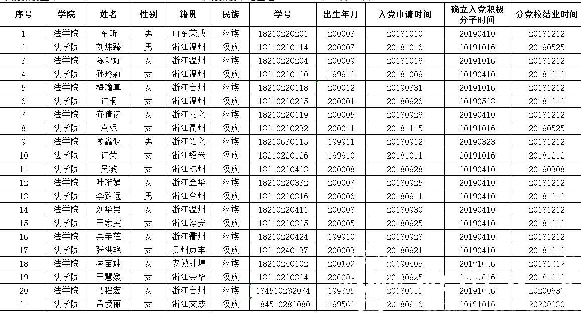 为了加强对发展党员工作的民主监督,保证发展新党员的质量,现将拟发展对象车昕等21位同学的有关情况公示如下,以便广泛听取意见。