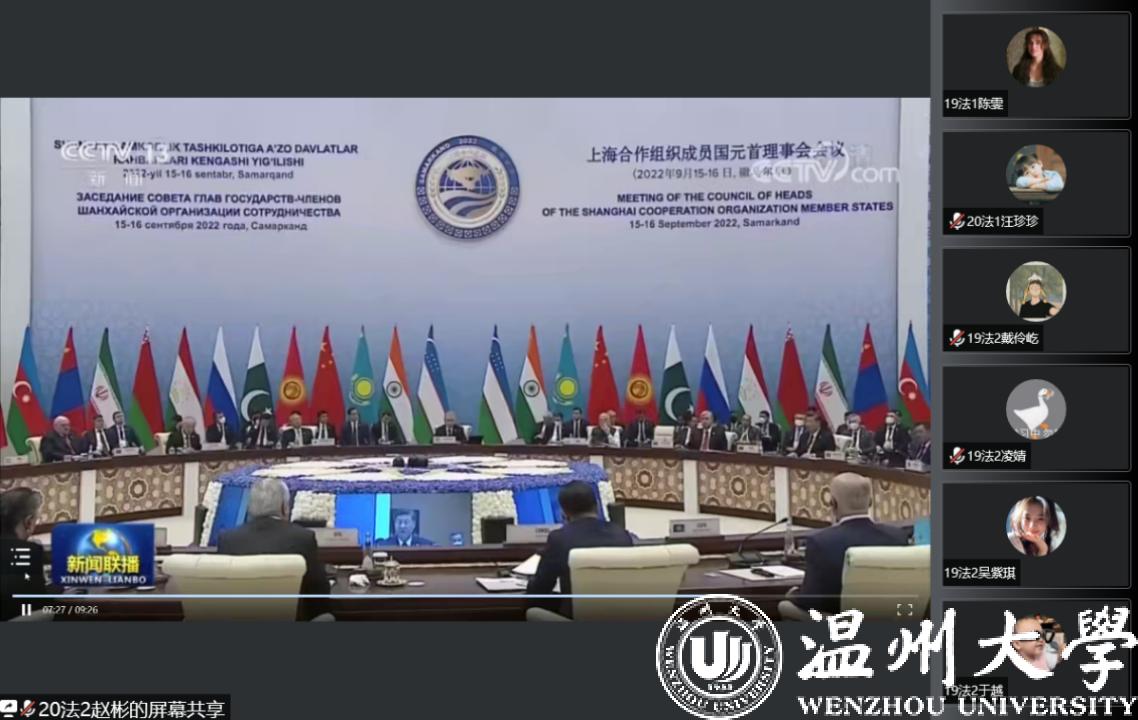 天际旷远,灯火璀璨,仲秋之月,14个国家的领导人从四面八方奔赴古城——撒马尔罕,召开上海合作组织成员国元首理事会第二十二次会议。yl永利集团官网登录本科生党支部于2022年9月21日开展线上“习近平主席出席上海合作组织成员国元首理事会第二十二次会议”重要讲话精神专题学习会,学习会围绕习近平总书记发表的重要讲话《把握时代潮流 加强团结合作 共创美好未来》展开,介绍上合峰会召开的相关信息及会议要点,体会习近平总书记对于“上海精神”,对于构建上海合作组织命运共同体的深切重视。