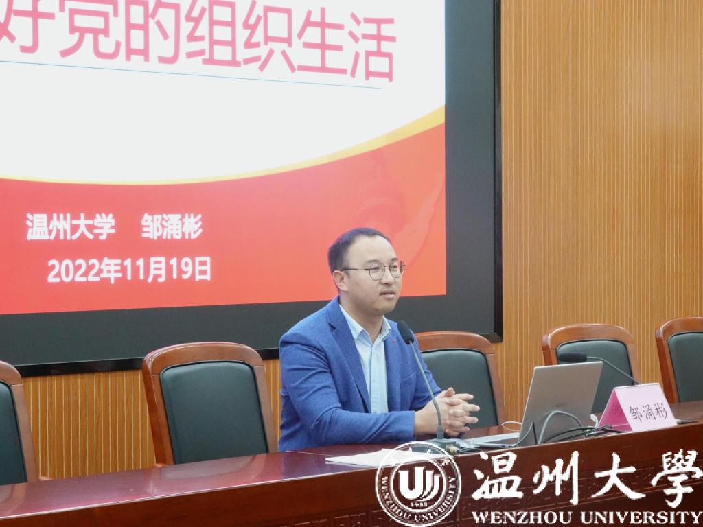 11月19日上午,化学与材料工程公司学工办副主任、党务负责老师邹涌彬老师就如何过好党内组织生活进行了讲解。邹老师从组织生活会、民主评议党员、“三会一课”、主题党日、谈心谈话五个方面讲解了党内组织生活的各项程序和要求,梳理了各位员工党员实际组织生活中遇到的问题并予以集中解答。邹老师希望各位员工党员骨干通过严格的党内组织生活,促进自身学习能力,提高自身素质,严格根据党章进行组织生活,发挥好党员的先锋模范作用和党组织的战斗堡垒作用。