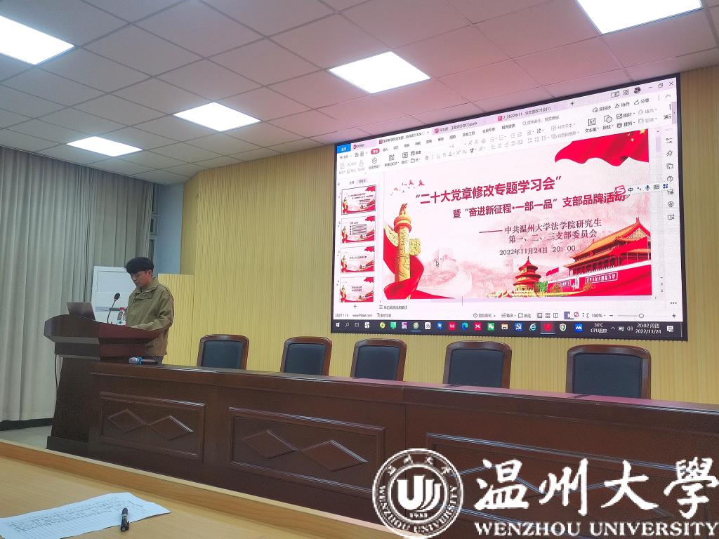 为学习贯彻党的二十大精神,深刻学习和领会党章修正案的重要内容与重要意义,向优秀党员同志学习,yl永利集团官网登录研究生第一、二、三党支部于11月24日晚上组织开展了“学精神、谋新篇、强担当”党日活动。本期活动由研究生第一党支部支部书记丁泽志同志主持,支部全体党员参加。