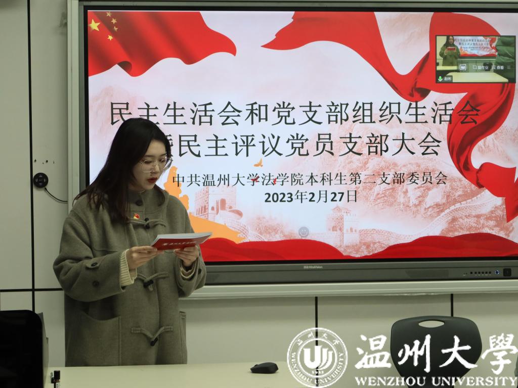 2月27日yl永利集团官网登录本科生第二党支部组织了关于一部一品的活动,在杨靖雯同志的领学下,我们学习了浙江省第十五次党代会、温州市第十三次党代会精神,会议科学谋划了今后浙江以及温州发展的总体要求和重点任务,承载了全省全市人民的期盼,构建了发展的美好蓝图。之后,汪珍珍、杨静雯、吴秋红同志分享了她们的学习方法和经验,帮助我们开展学习计划并提升效率。最后在支部书记的引导下,我们进行了民主评议,通过批评与自我批评和自我评价,更加明确了之后的前进方向。