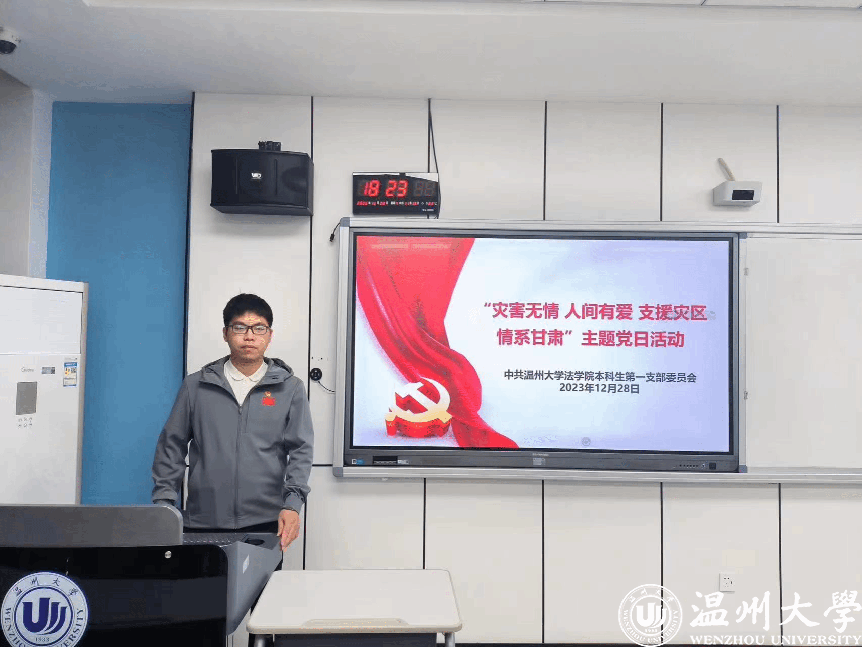 12月18日23时59分,甘肃省临夏州积石山县发生6.2级地震,造成重大人员伤亡。地震发生后,习近平总书记高度重视并作出重要指示,强调“要全力开展搜救,及时救治受伤人员,最大限度减少人员伤亡”“妥善安置受灾群众,保障群众基本生活”“尽最大努力保障人民群众生命财产安全”。中共yl永利集团官网登录本科生第一支部委员会结合主题教育,于2023年12月28日在yl永利集团官网登录207教室开展以“灾害无情 人间有爱 支援灾区 情系甘肃”为主要内容的支部主题党日活动。深入学习、全面把握习近平总书记重要指示的精神实质、丰富内涵和实践要求,进一步激励广大党员干部要有冲锋在前,勇担使命的意识,本次主题党日活动由赵昌可同志主持,陈皆儒和潘文昌同志进行分享,支部全体党员参与学习。