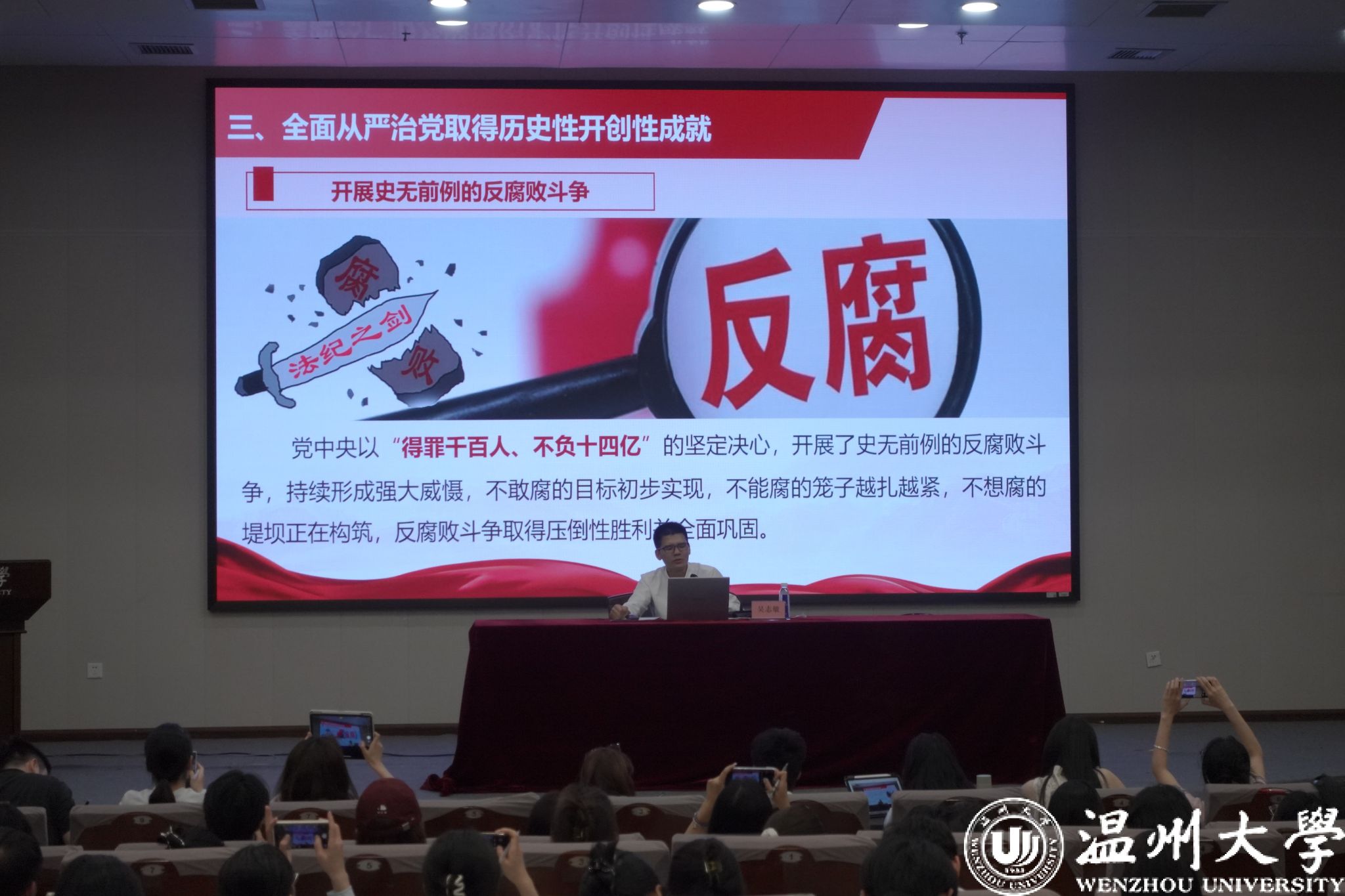 5月16日晚,吴志敏老师首先提到习近平总书记二〇二二年新年贺词中提到的“窑洞对”,从“窑洞之问”的“第二个答案”引申出党的自我革命的重要性,并分别从全面从严治党是新时代党的建设的鲜明主题、以政治建设为统领深入推进党的建设、坚定不移推进反腐败斗争、建设长期执政的马克思主义政党四个方面进行讲解。从党情来看,我们党重视加强自身建设,坚持党要管党、从严治党,党的建设取得显著成效,党在人民群众中树立了崇高威望。但是也要看到,诸多考验、危险将长期存在,因此必须加强党的自身建设。