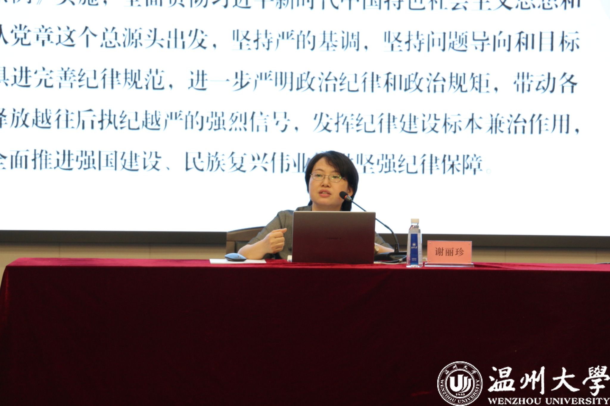 5月17日晚,谢丽珍老师讲解了《中国共产党纪律处分条例》的修订背景和要求以及《条例》修订的主要内容、如何贯彻执行《条例》等。谢老师的讲解内容丰富,理论扎实,让学员们深刻认识到党内纪律的重要性,必须做到慎独慎微、慎言慎行,始终保持共产党员的先进性和纯洁性。