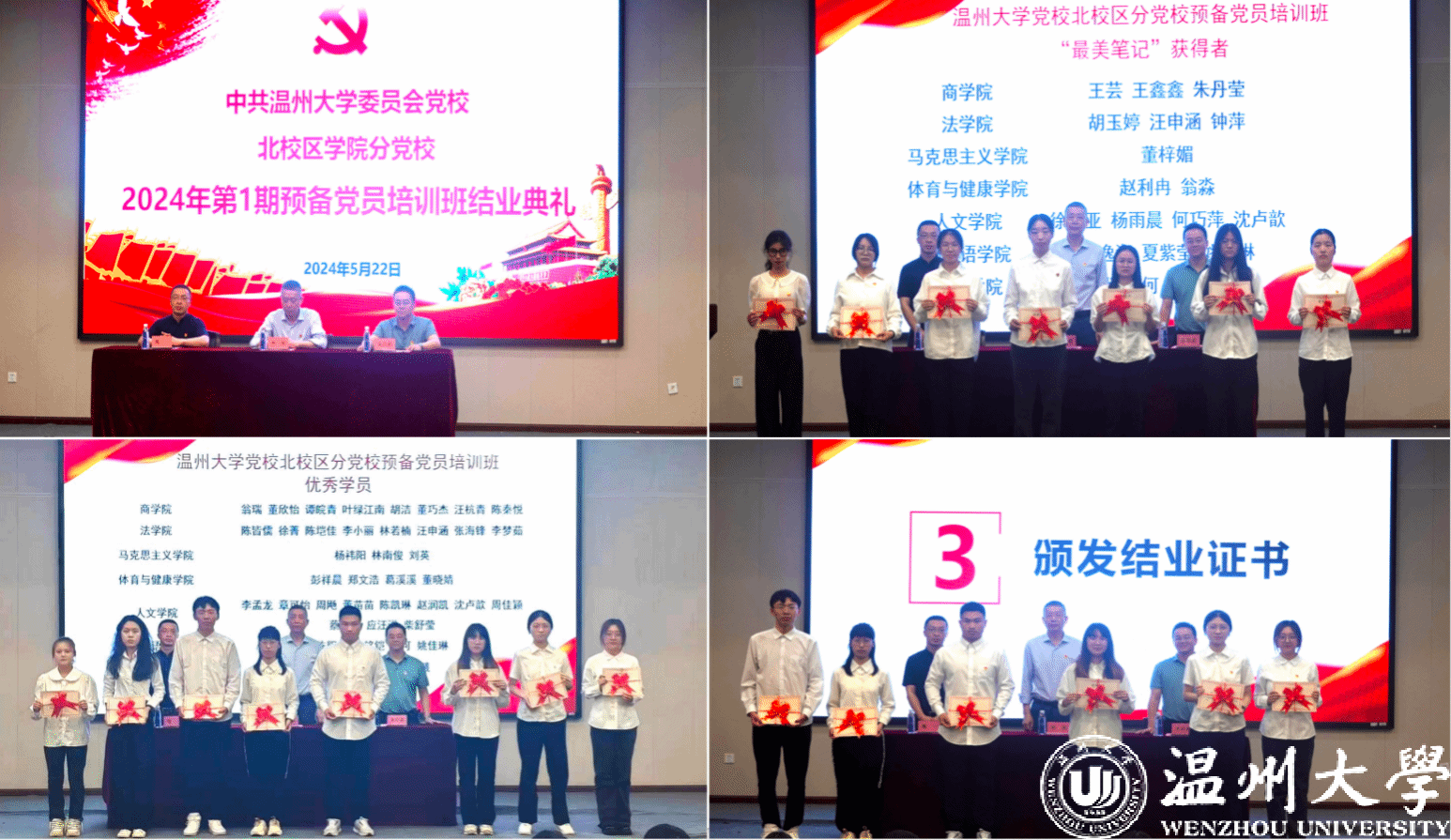 最后,出席本次结业典礼的各公司分党校董事长林钦老师、 朱启鑫老师、人文公司党委副书记魏一老师为顺利结业的186名预备党员颁发结业证书,并分别对优秀学员和最美笔记获得者进行表彰。
