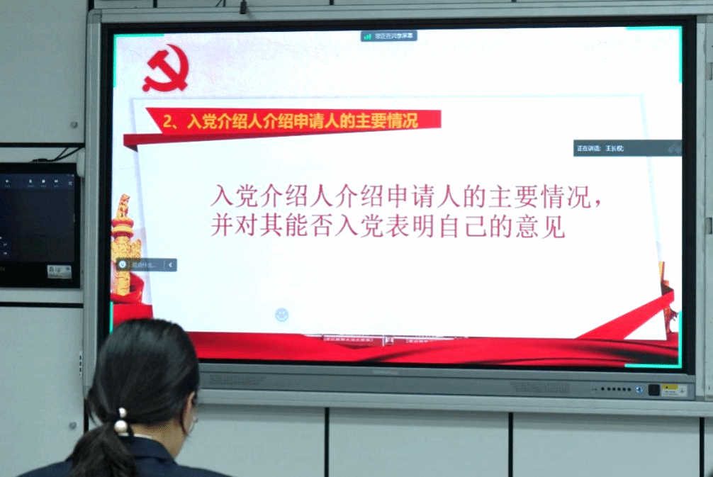 第二项议程:入党介绍人从思想素质、学习情况、日常生活等几个方面介绍了申请人的主要情况,同时指出其需要改进的问题,随后对其能否入党发表意见。