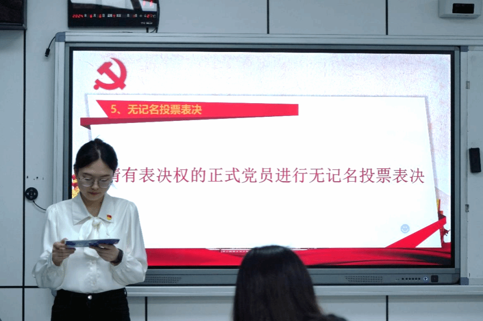 第五项议程:由各党支部中拥有表决权的正式党员进行无记名投票表决。经与会正式党员严格按照规定投票表决,在投票结束后,大会公布了结果并一致同意接收为中共预备党员。