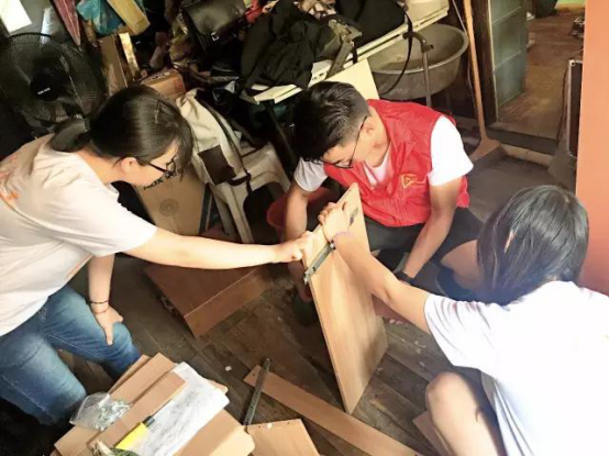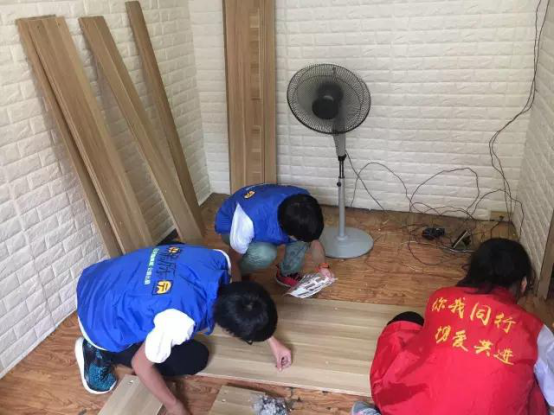 中期,"同行"小候鸟实践队进行了较长时间的物资采购,每一件物资都是经过队员们精心挑选出来的,带着对孩子的爱,我们前行,深入改造。家庭环境改造,根据不同家庭的不同需要展开,贴墙纸,安窗帘,搬家具,装电扇等等,在极其炎热的环境下,队员们仍旧努力克服着,尽管大汗淋漓,腰酸背疼,实践队的每一位的成员还是坚持到改造的最后一刻,直到一个崭新的环境呈现在大家的眼前。经过自己的双手努力打造出来的环境,成果总是令人欣喜满意的,孩子和家长连连感恩道谢,而我们,深深为作为老员工带去的社会正能量而感到骄傲!