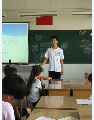 上午八点,上课铃声响起。实践队成员汪瑜婷和单栋楹开始为1班的小员工们上美术课。这节课主要教小朋友们线描。首先为大家介绍了线描的基本知识,并在PPT上展示了一些作品以及各种线条和点的画法和组合。为了让小朋友们能更好地掌握,两位小老师还在黑板上进行示范。接着就是小朋友们的自由发挥时间,绘画的主题是手。他们利用简简单单的一支水笔和一张白纸,充分发挥想象力,天马行空,最后呈现的作品虽然有些稚嫩,但富有童趣和创意。2班则是郑荣权的趣味故事课。在正式开始讲故事前,他先让小朋友们玩了一个报数的游戏。在输的小朋友上台接受惩罚时,一个小姑娘表演的用口哨吹《虫儿飞》很让我们惊喜。简单的小游戏过后,课堂气氛活跃起来。郑荣权为小朋友们带来的是《伊索寓言》。生动的讲述和故事本身的魅力让孩子们沉浸其中,并时不时提问。故事结束后,是一个小讨论。在老师的引导下,大家积极发言,说出自己对故事的感想。