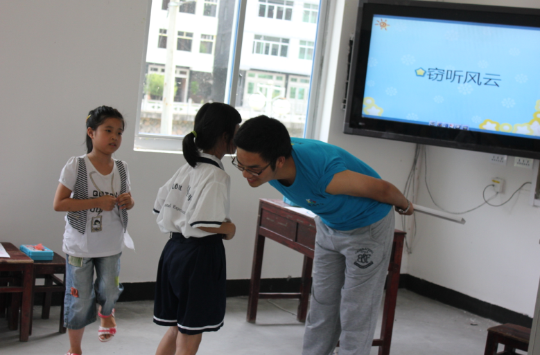 昨天,经过志愿者们一晚上的辛苦工作,东溪小学二楼重修的两间多媒体教室终于向同学们正式开放。之前由于放假重整等原因,我们常规上课只有两间教室,一间舞蹈教室作为多媒体教室,大小班轮流上课。而新教室的开放,无疑为我们的教学课程提供了新的内容。今天下午,我们特地以新教室作为活动场所,进行了一次有趣的素质拓展培训。培训主题是破冰之旅,目的是为了培养员工的团队意识。培训的内容包括四项:你追我赶、团队设计、窃听风云、无敌风火轮。其中,最受孩子们喜爱的便是无敌风火轮的游戏,老师将员工分为四组,各组小营员们一起动手配合,用报纸制作风火轮,在嘹亮的口号声中一齐冲向终点。游戏结束后,小组成员和辅助老师坐在一起讨论经验,并就此次活动发表自己的感受。最后,游戏并没有胜负之分,而是在孩子们惩罚老师唱歌的欢笑中结束了这次活动。