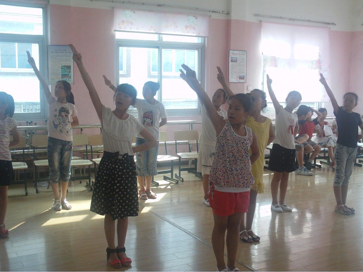 为了活动的顺利进行,首先,我们内部进行了严密的分工,由队长带领一个队员去镇上侨联之家送邀请函给镇侨联的领导,并与之沟通场地布置、活动内容及过程以及为孩子们准备礼品。其余的队员分为两组,分别负责员工节目排练和我们队员的节目准备。下午第二节课,我们对所有的节目进行了彩排,对于一些不足的地方进行修改,强调一些注意的内容。孩子们卖力的表演得到我们的肯定。