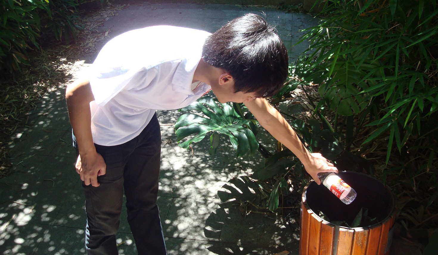 一到生态园我们立即开始了今天的实践活动——绿化园区,文明督促游客。我们兵分几路,一部分队员跟随着园区保安去纠正游客们的不文明行为——随意攀爬建筑物,乱扔垃圾,在建筑物上随意刻化;另一部分的队员则跟随队长去绿化园区。 在实践中,我们看到了好的一面又看到了坏的一面,好的一面是游客们在园区的小桥上休憩,下下象棋,唱唱戏剧…好不休闲!仍欠缺的则是游客们丢垃圾总是不愿将它们扔进垃圾桶里,而是就近扔在草丛里,这也加大了我们的工作难度,一些在草丛里的细小垃圾根本不能清理干净…