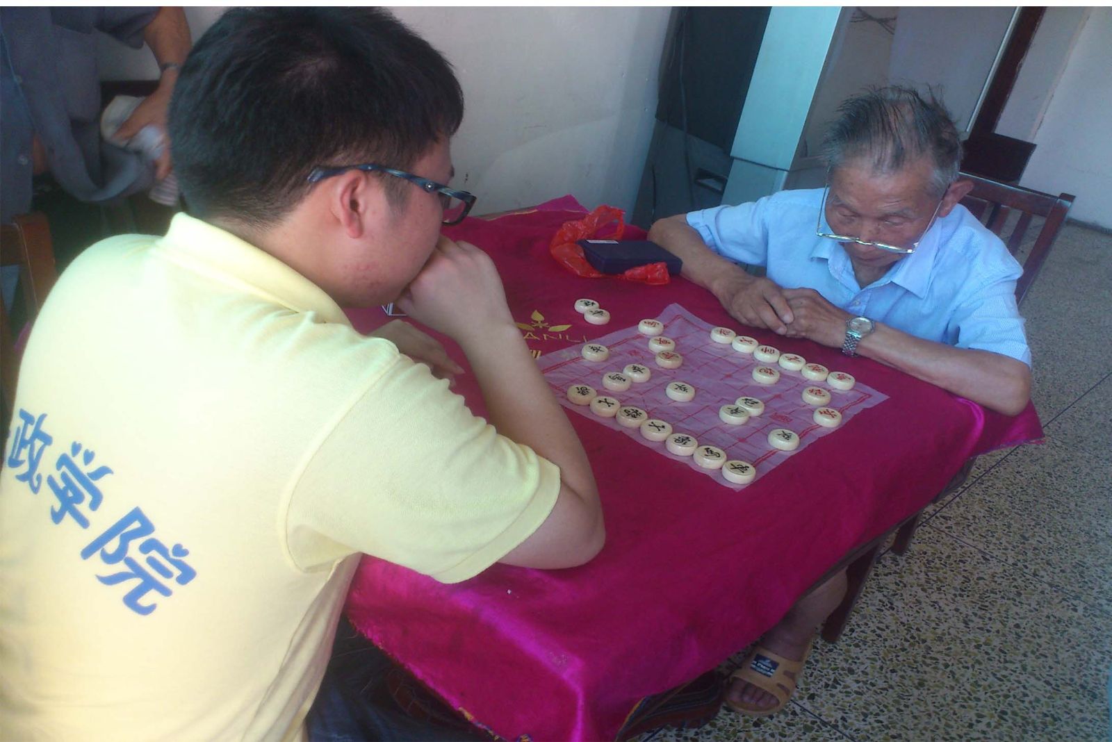 我们很快的到达了目的地。跟经理亲切地打完招呼后,我们协同与爱同行的队员开始拿西瓜出来切并分给每一位老人。老人们吃得不亦乐乎,有说有笑。我们的实践队员们也没有停下来,语言沟通无障碍的就坐在老人旁边,跟他们,聊聊天,听不懂的,即使是握握他们的手,对他们来说也是一种欣慰和感动。期间,我们队员还和一位老人下起了棋,也有其他的队员协助与爱同行的队员拿起了扫把到屋外去扫地。