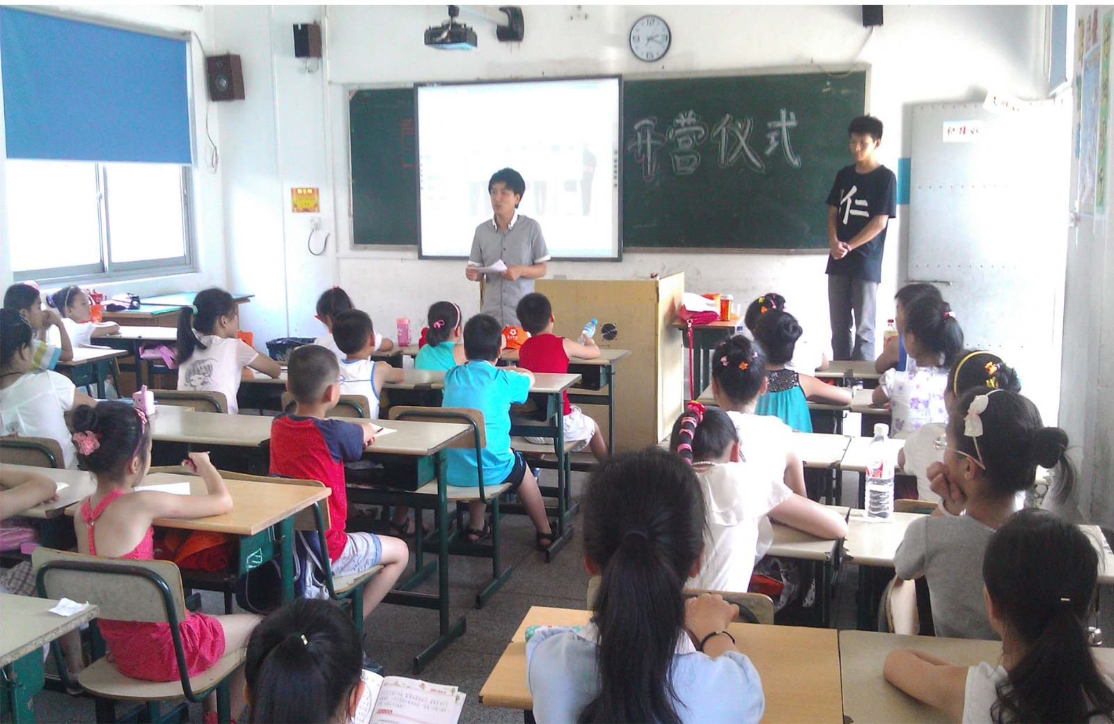 我们分营的开营仪式在9:00隆重举行,丽岙一小大队辅导员林达老师发表了重要讲话,他强调了活动中的安全纪律问题,并代表公司向我们表示感谢。全体队员在本次开营仪式中进行了实"我是谁"为主题的爱国主义教育,通过我国的历史、国土面积以及人口,使每一位参加快乐营的孩子深刻的了解到我是中国人的含义。上午,践队指导老师徐旭东热情赶来慰问我们实践队队员,交流实践中的一些问题。接下来我们迎来我们的第一节课手语,在我们全队的指引下,小朋友们都兴高采烈地参与其中,个别同学还主动要求上台为大家展示学习成果。然后进行了趣味体育课。上午十一三十分准时放学。下午两点,徐温娴进行了主题为"我爱我乡"的爱乡教育,通过孩子们的丰富想象力与我们的正确引导,使孩子们心中的家乡呈现在一张张画纸上。晚上,部分队员对个别孩子进行了家访。从中了解了侨界留守儿童的现状,并记录在案。