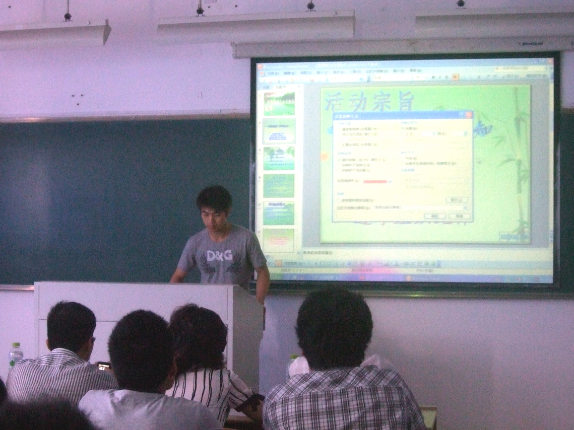 此次比赛以实践方案策划书的PPT演讲为主,分别从实践方案的组织构架、实践主题、意义以及方案的创意和可行性等方面进行全面详细的评比。选手们精彩的演讲、精美的PPT以及极具新意的方案都给评委们留下了深刻的印象。整个比赛过程激情洋溢,选手们的方案内容涵盖了庆祝建党90周年、法律援助与和谐社会、老龄工作、侨界留守儿童工作、环境保护等各个方面。