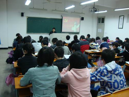 4月6日,法政公司09-10学年第二学期入党积极分子培训班第三次培训如期在2-111举行,60多名入党积极分子参加了学习培训。永利集团官网组织部叶正飞老师的讲座主题是:《树立正确的入党动机》。
