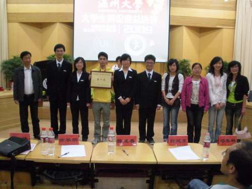 经过两场激烈的比赛,最后,外国语公司夺得桂冠,化学与材料工程公司荣获亚军,法政公司获得季军。同时城市公司的卢秀飞和化学与材料工程公司的蒋晔梅被评为"最佳辩手"。
