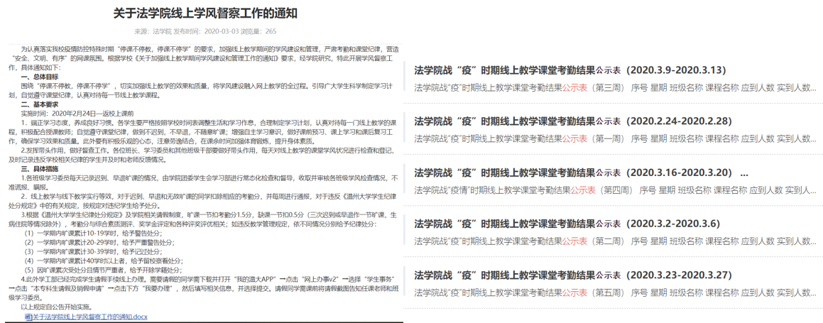 “晒”教学反馈,开展线上“教学座谈会+问卷调查”,着力打通教情通道和学情通道,及时了解教师线上教学状态和员工学习效果。开启“互联网+教学督导”模式,线上课程督导覆盖率达100%,准确掌握情况,及时提出改进措施,提供有力指导。