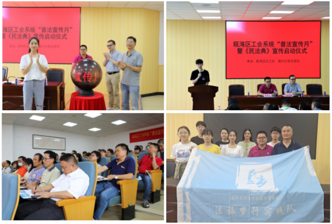 “法旅梦”实践队开展“平安瓯海”综合体建设、疫情之下企业员工权益保障等课题调研,并与公司法学专业老师一起开展民法典和应急法主题宣讲活动。
