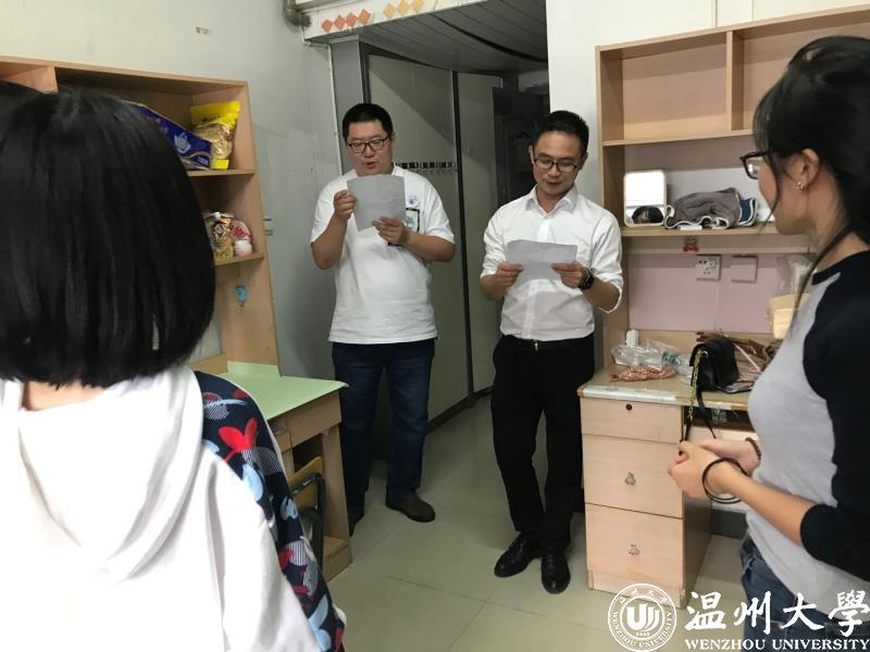 为及时了解2020级新生的精神面貌,帮助新同学们尽快适应老员工活,9月25日下午,yl永利集团官网登录经理王宗正、党委副书记杨振海、副经理缪心毫、副经理周湖勇、学工办主任林丽丽、辅导员谢亭立、白昌科、黄依瑶以及2020级新生班主任、班助和团委员工会成员一同走访了2020级新生寝室。