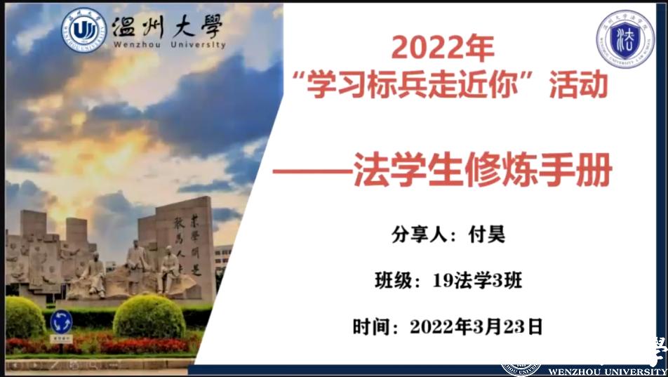 3月23日晚,yl永利集团官网登录在腾讯会议举行“节令三耕”学风建设系列活动之“学习标兵走近你”学习分享会。本次分享会邀请了yl永利集团官网登录2021年“学习标兵”付昊、徐静仪、唐宸宸同学分别作题为“法员工修炼手册”、“让每一秒都有意义”和“竞赛之于我们”的精彩分享。
