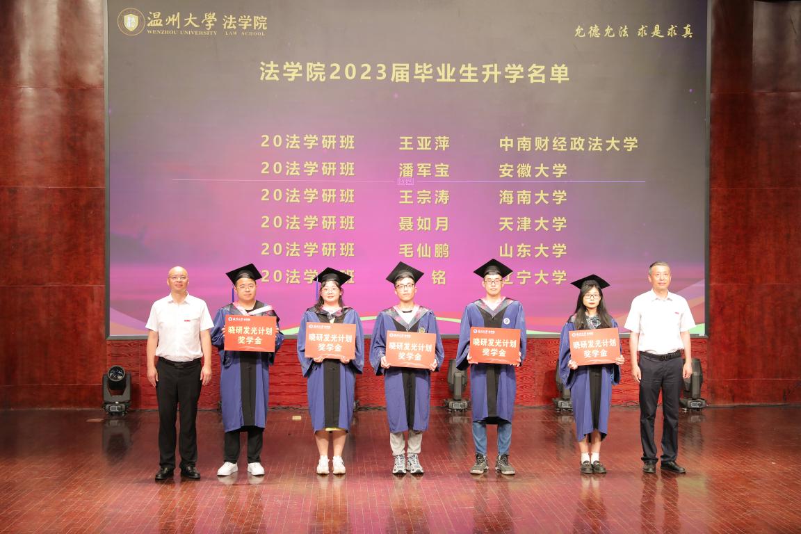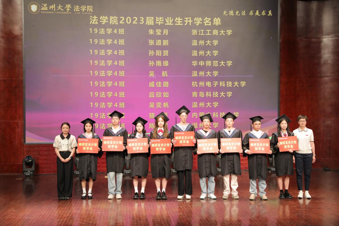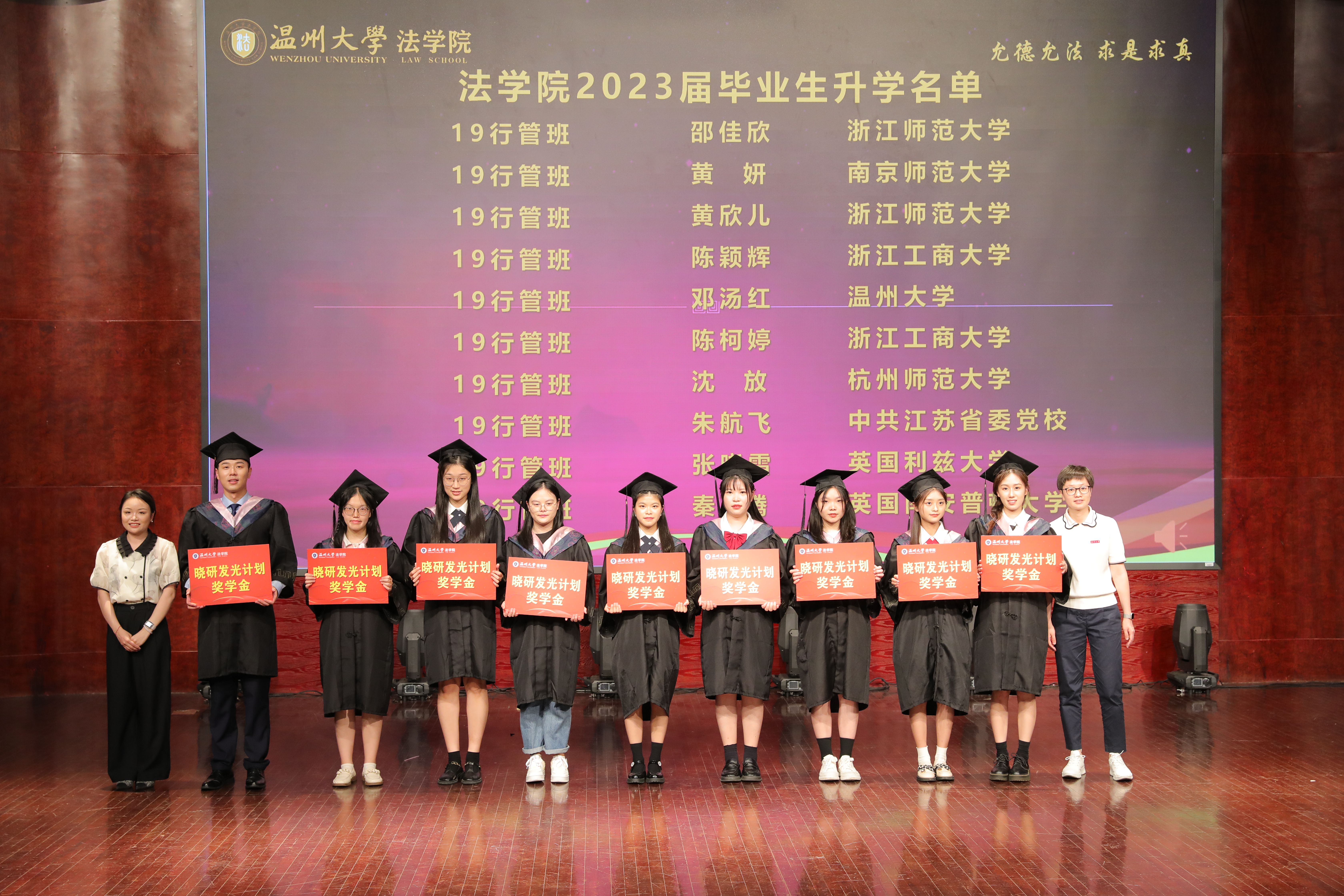 在考博考研的征途中,公司2023届共53名员工成功考取心仪院校。近日,公司成立了晓研升学专项奖学金,由优秀员工、温州市晓研教育信息咨询有限公司陈华娟员工热心出资设立,专项用于员工升学奖励。典礼现场,经理王宗正、党委书记林钦、副经理周一颜、优秀员工陈华娟为同学们颁发升学奖学金并送上诚挚的祝福。