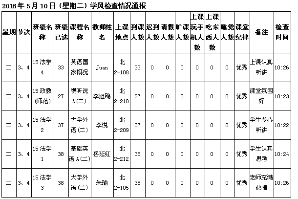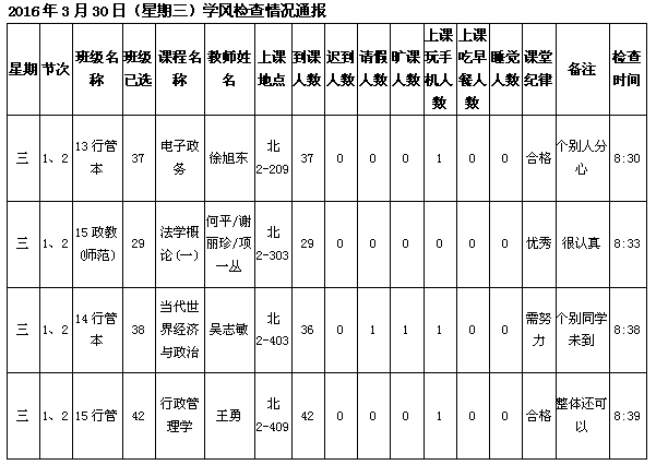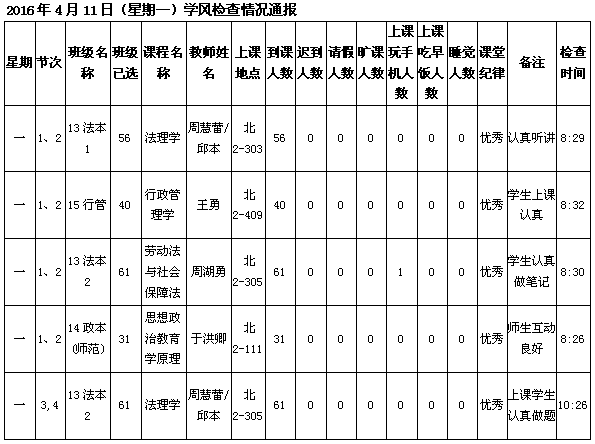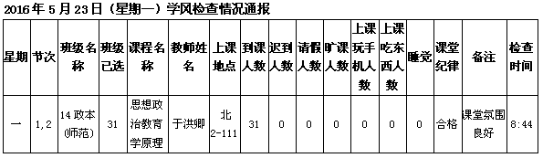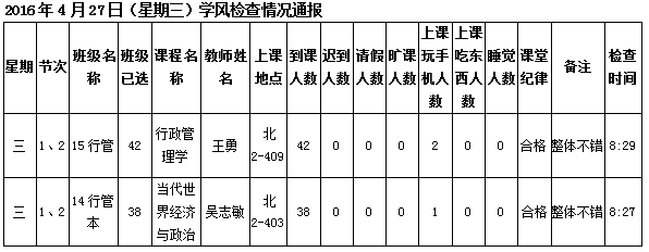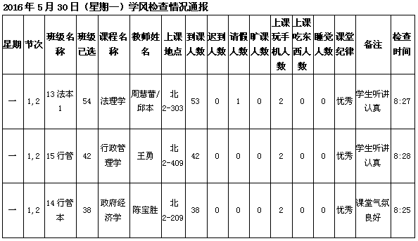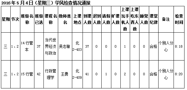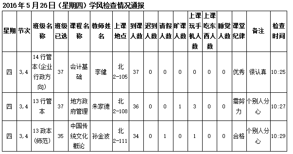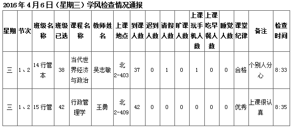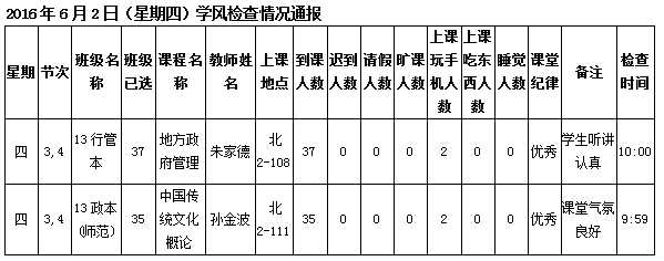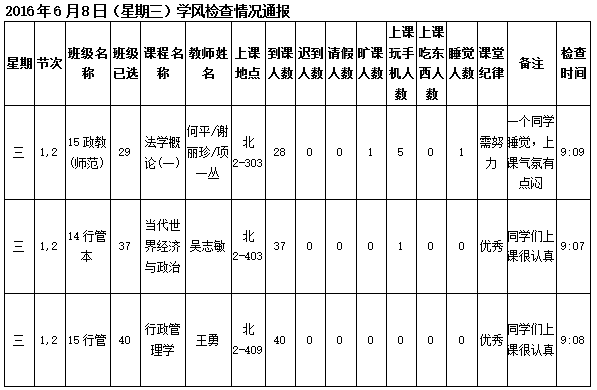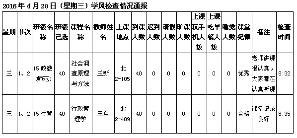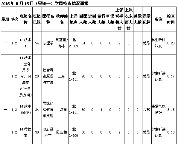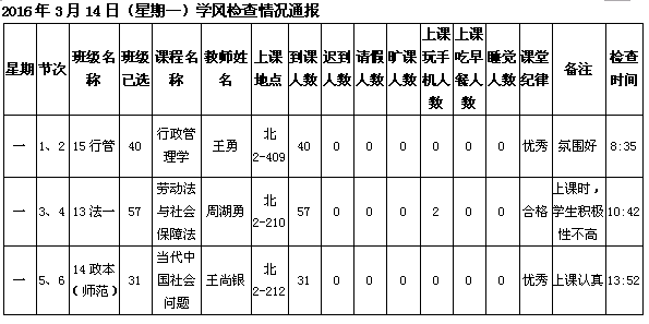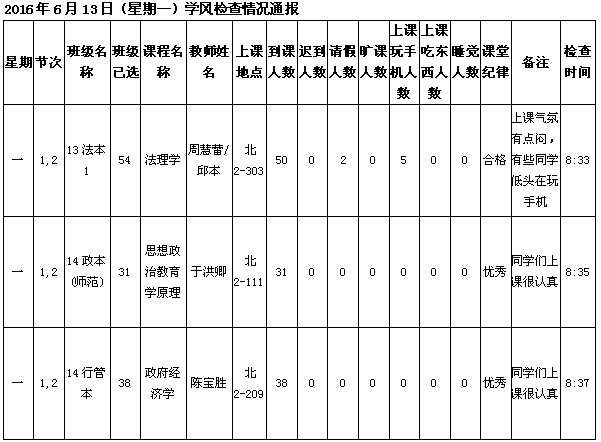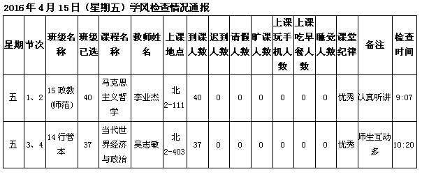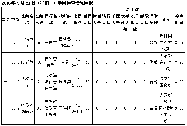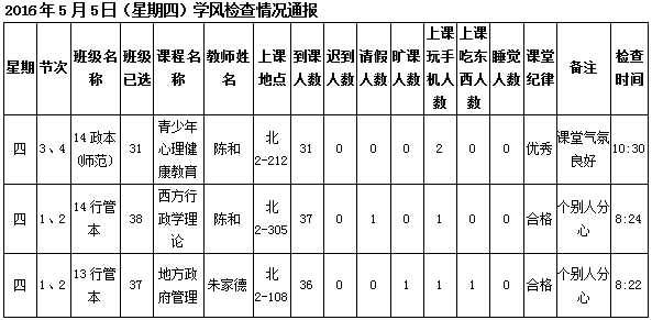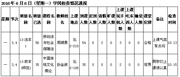 1.优秀,人员到齐,纪律良好;2.合格,人员到齐或有请假,纪律一般;