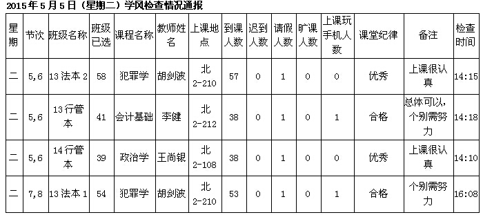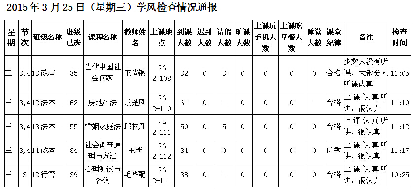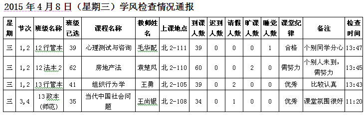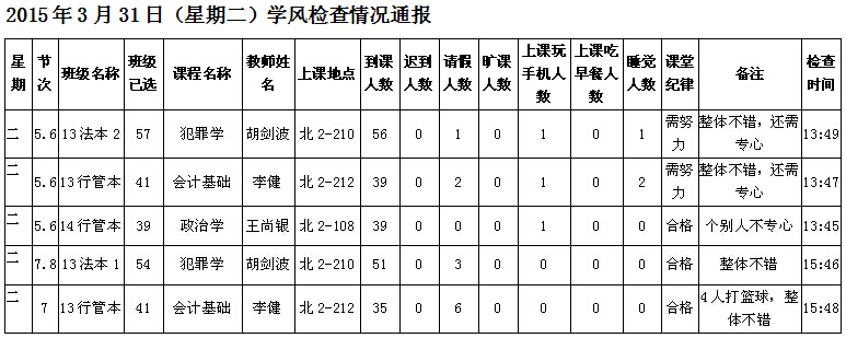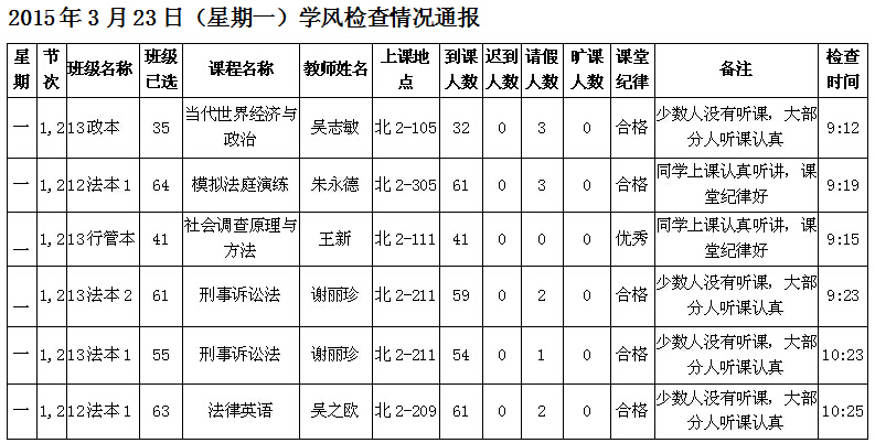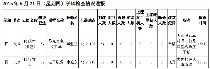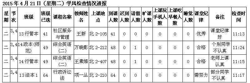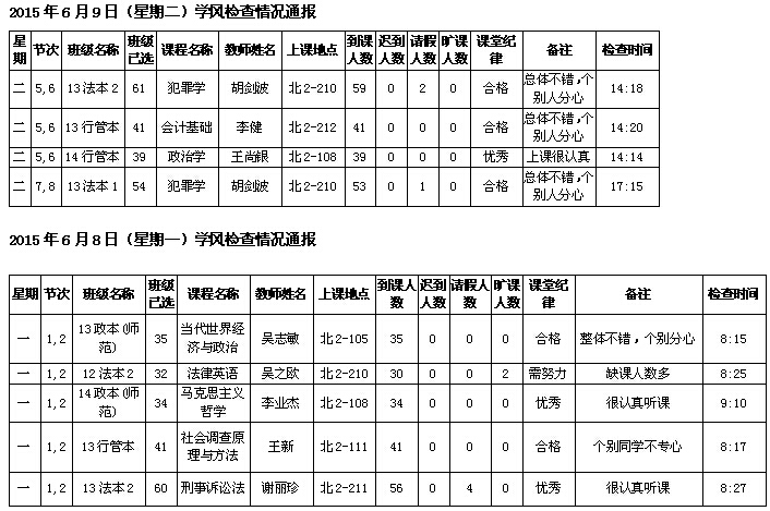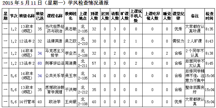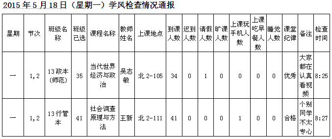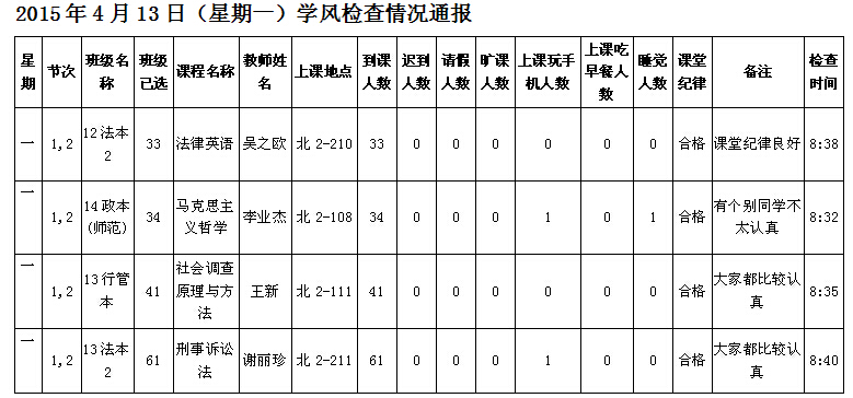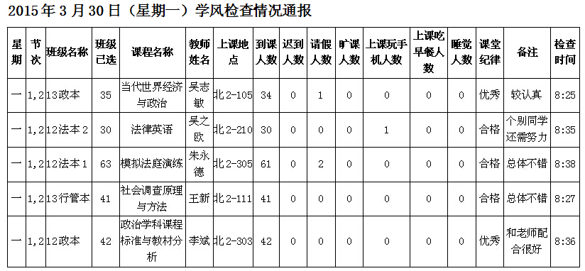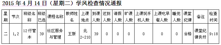 1.优秀,人员到齐,纪律良好;2.合格,人员到齐或有请假,纪律一般;