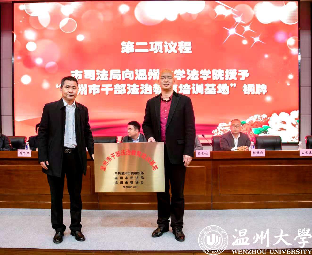 2020年12月1日上午,温州市干部法治教育培训基地授牌仪式暨瓯海区领导干部学法清单制度试点工作“开班第一课”在永利集团官网图书馆报告厅隆重举行!温州市干部法治教育培训基地正式落户yl永利集团官网登录。